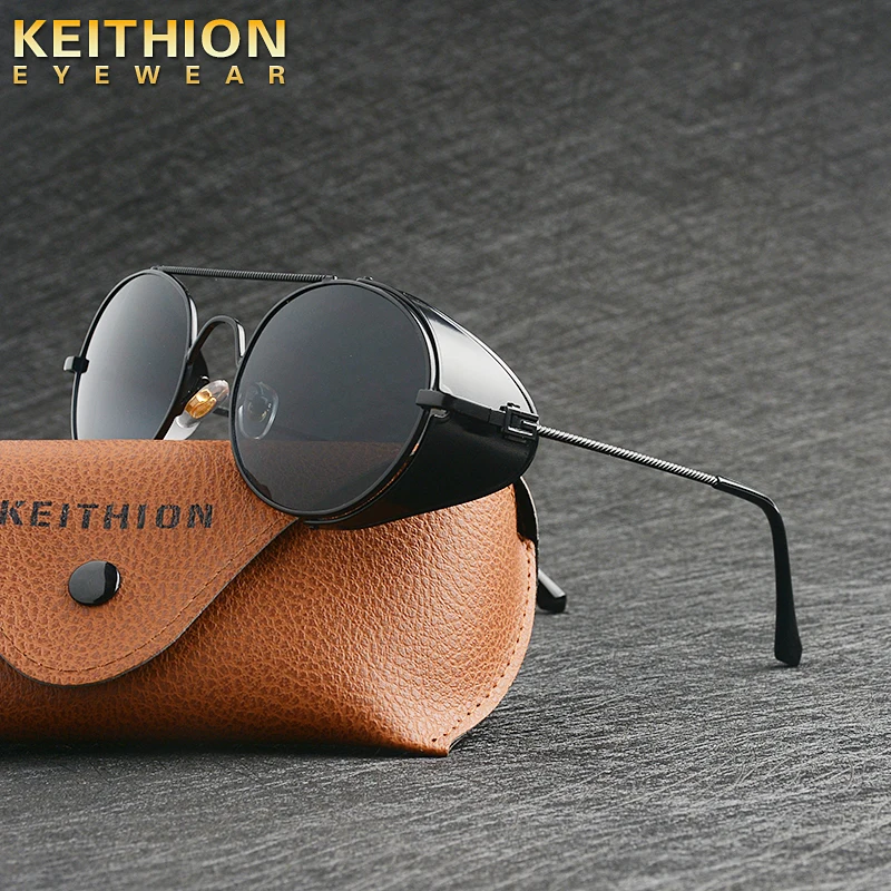 Солнцезащитные очки KEITHION в стиле ретро, стимпанк, для мужчин и женщин, с боковой защитой, круглые винтажные очки в стиле стимпанк, с защитой UV400