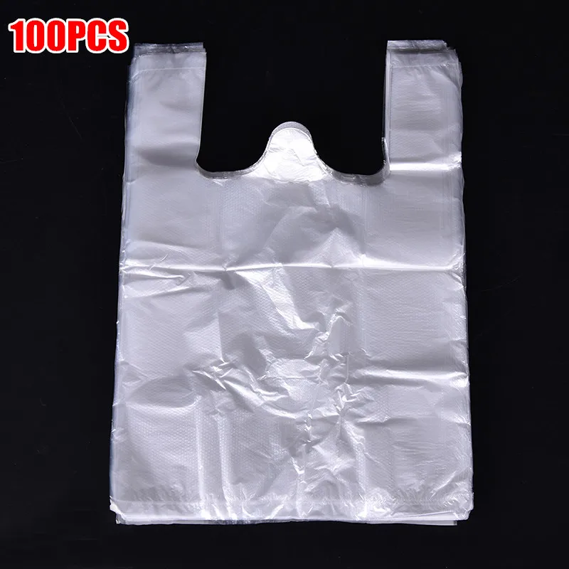 100 шт Прозрачные сумки хозяйственные сумки супермаркеты пластиковы...