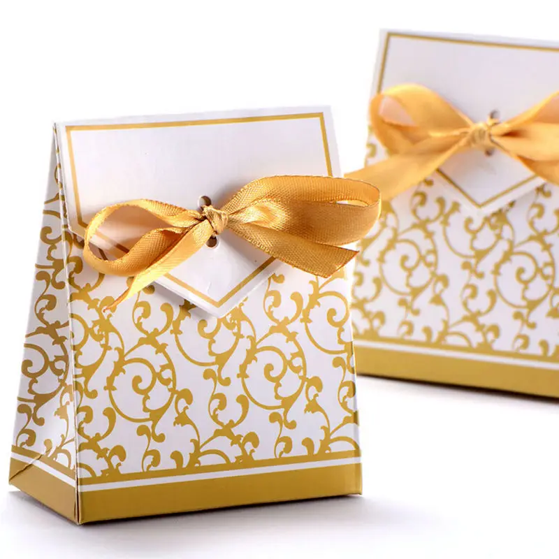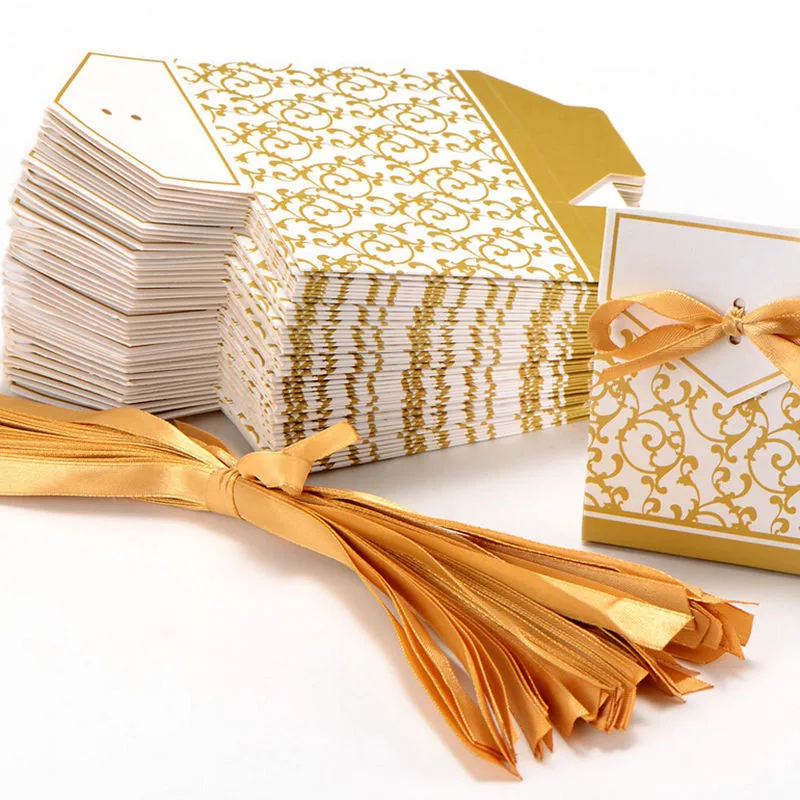 Бумажная коробка с лентой, 10 шт.лот, золотого, серебряного цветов,...