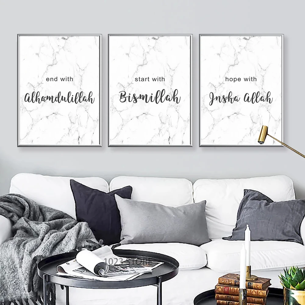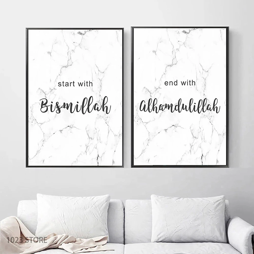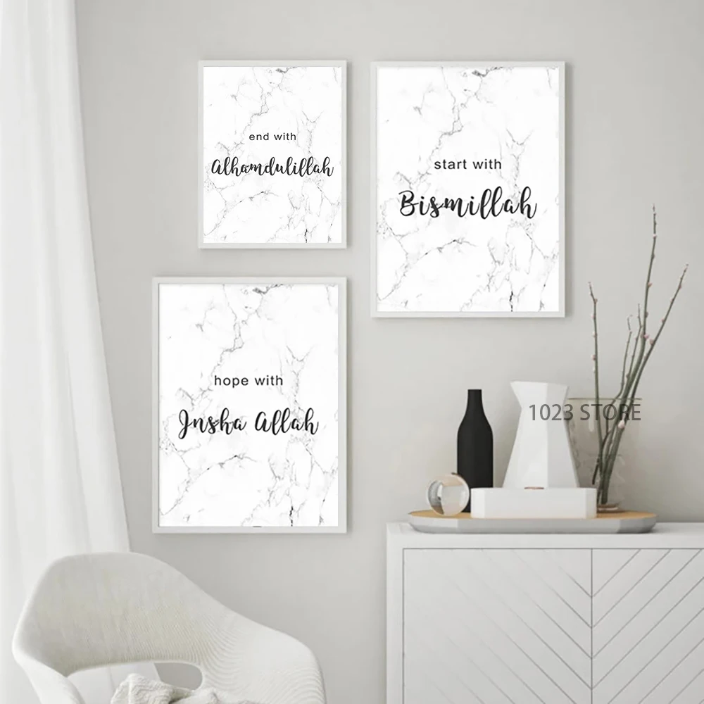 Мусульманский мраморный фон Bismillah, текстура, простой плакат с шрифтами, холст с принтом, художественная настенная живопись, Современный домашний декор, картина