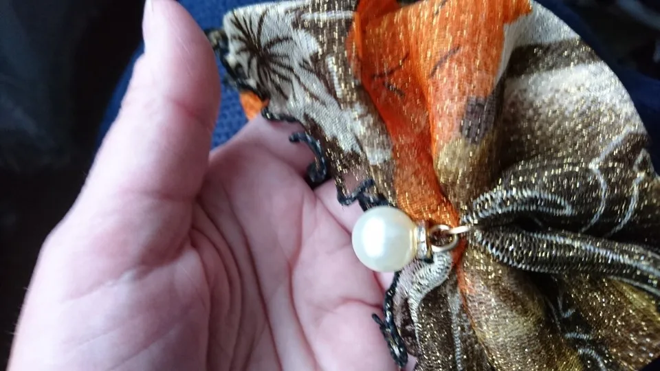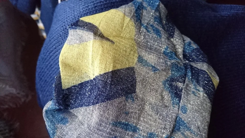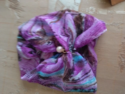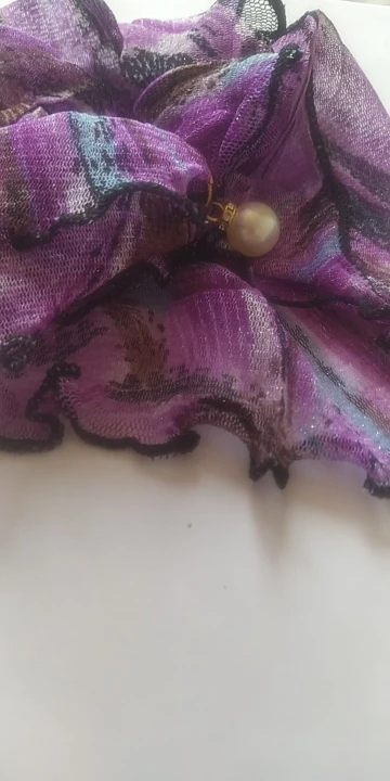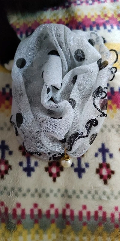 тоненький шарфик одевается через голову растягивается сделан достаточно аккуратно немного Павловский дворец как с люрексовой нитью за 56 руб как дополнительный аксессуар вполне прилично
