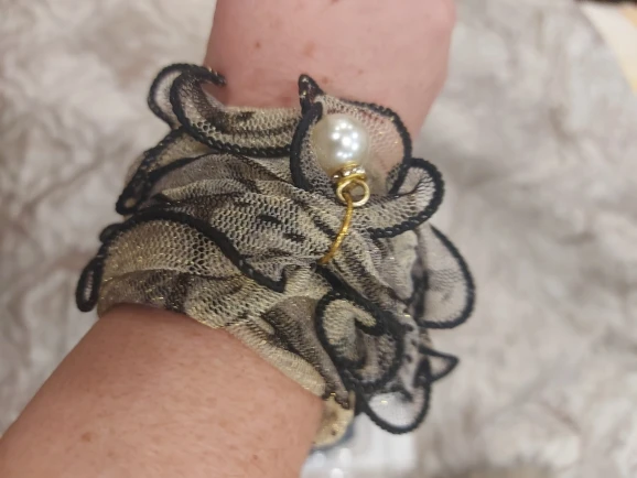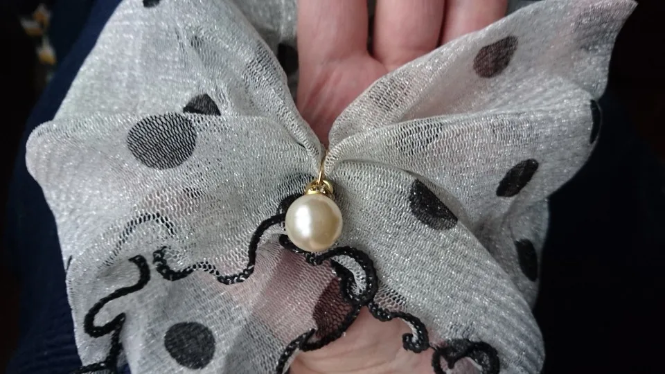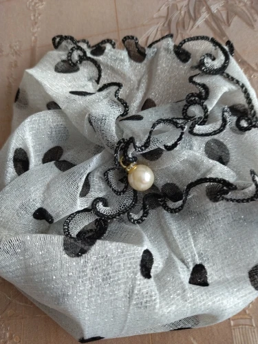 Думала, что Белая, а она- с нитями Серебра...Смотрится, поэтому, Серой практически. Есть дефект Оверлока. А так- Ничего. Интересная. На шее Длинной, будет Красивее.