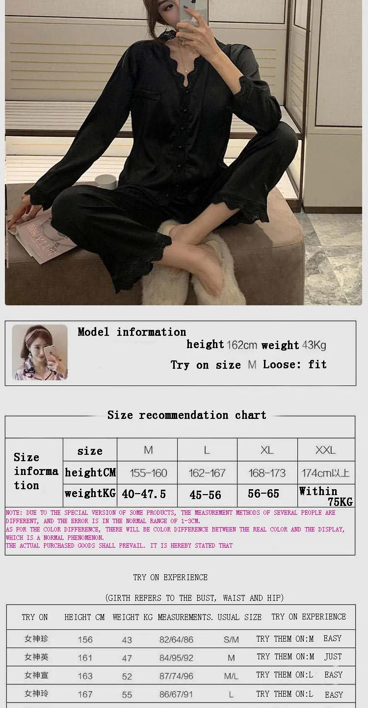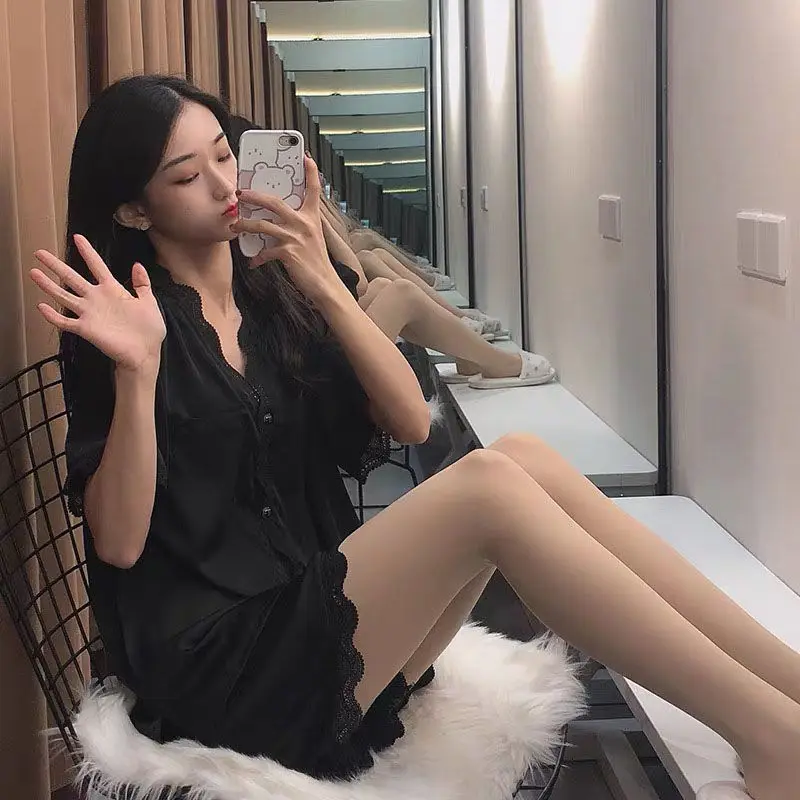 Пижама женская, Корейская, кружевная, летний и осенний комплект из двух предметов, домашняя одежда