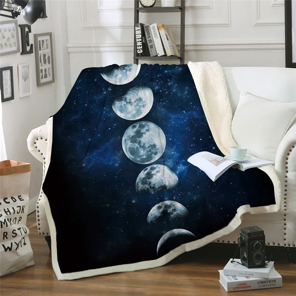 Плед-одеяло в богемном стиле с 3d-рисунком Солнца и Луны