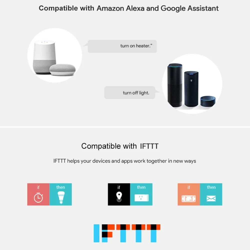 Пульт дистанционного управления: вы можете включить/выключить подключенные электронные устройства из любого места через бесплатное приложение eWeLink на IOS и Android.