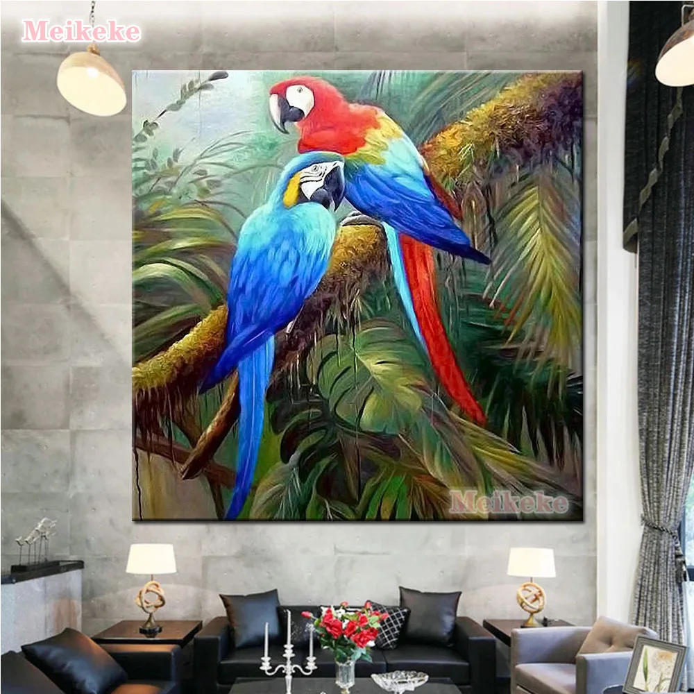 Алмазная живопись "сделай сам", квадратнаякруглая пара попугаев Алмазная вышивка, Алмазная мозаика, рукоделие, вышивка крестиком