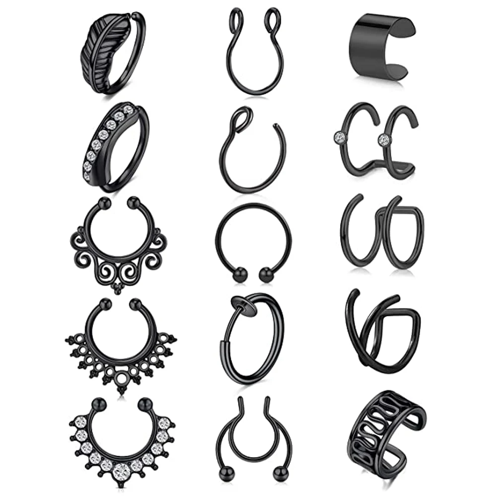 Имитация искусственной Перегородки Пирсинга перегородка из нержавеющей стали искусственная кожа кольцо для перегородки без пирсинга клипса на Луну кольца для носа