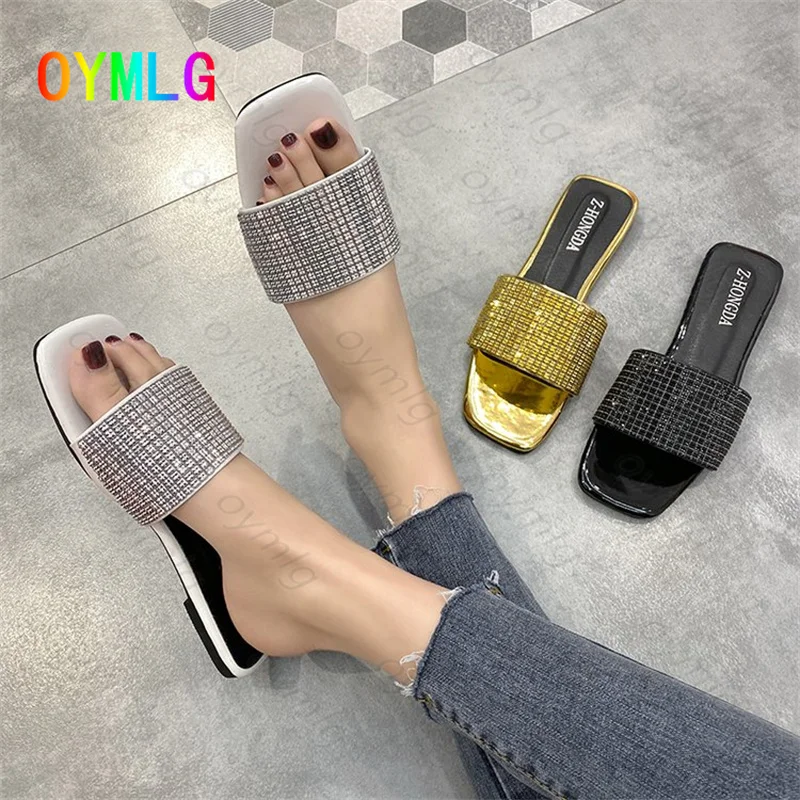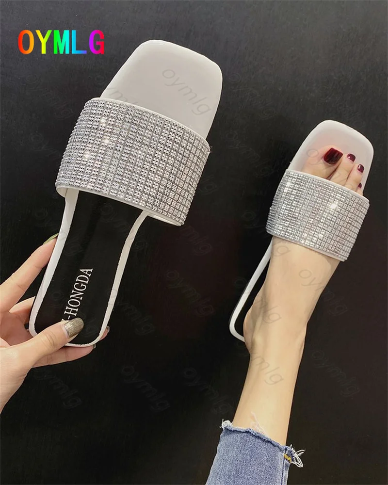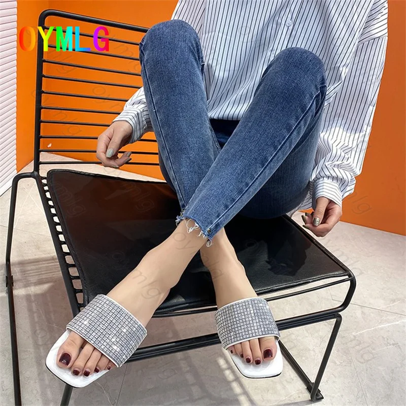 2021 новые весенние сандалии и шлепанцы женская верхняя одежда толстый каблук с кристаллами женские вьетнамки на низком каблуке