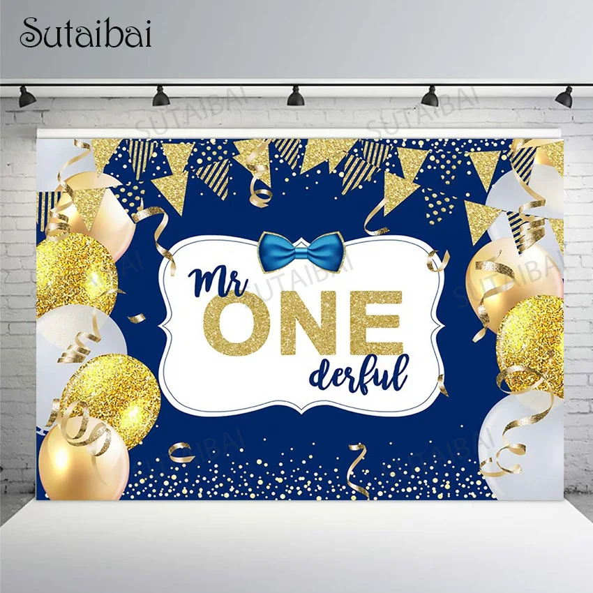 Фон мистер Onederful для 1-го дня рождения золотые блестящие воздушные шары мальчик бант фон Вечеринка баннер фотобудка реквизит торт стол Декор