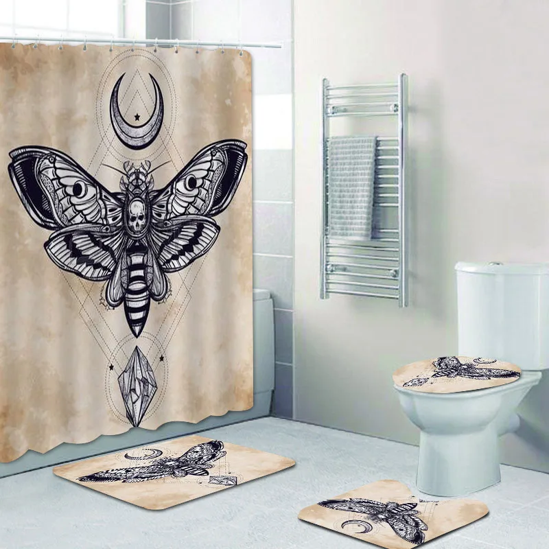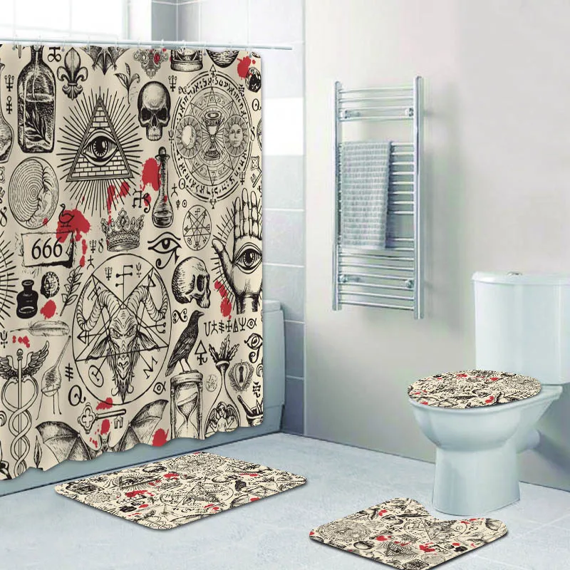 Шторка для душа и коврик в стиле ретро, с принтом демона и пентаграммы, черная волшебная черепа, тату, коврики для ванной комнаты