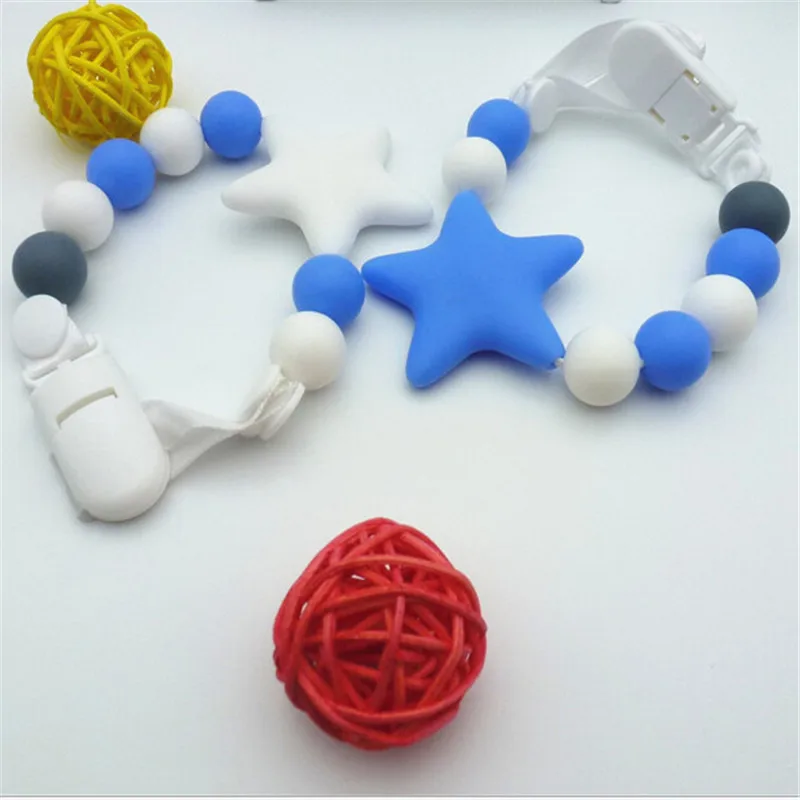 Зажимы для соски, пищевые силиконовые бусины, безопасный держатель для соски, звезды, цепочки, Товары для детей, подарки