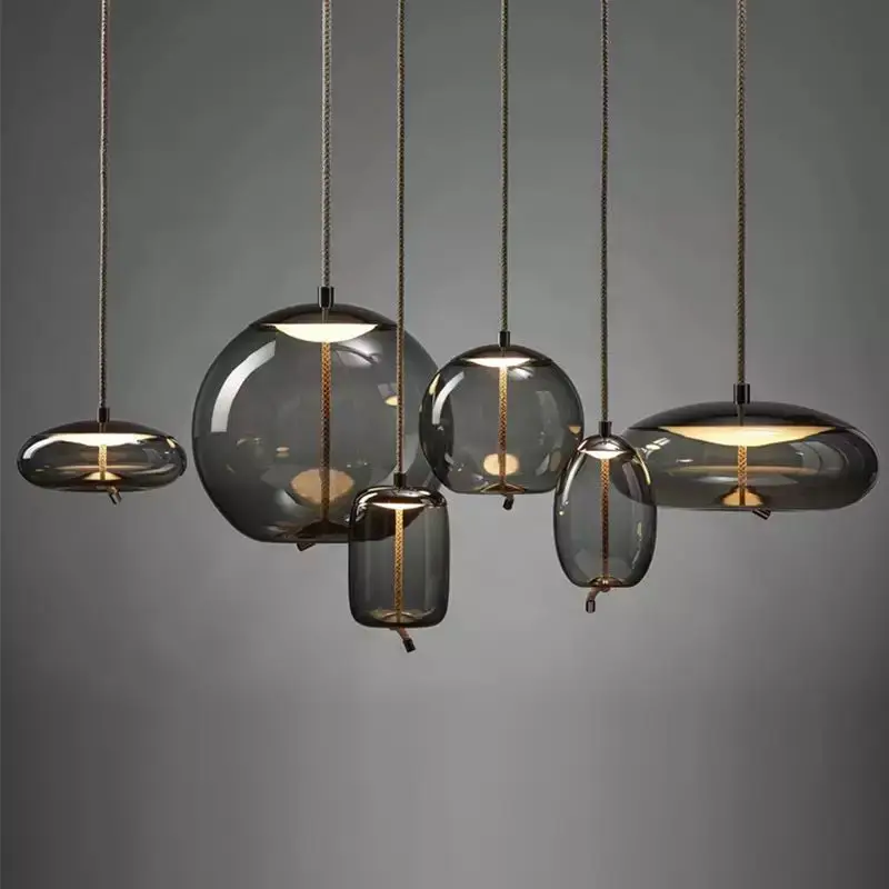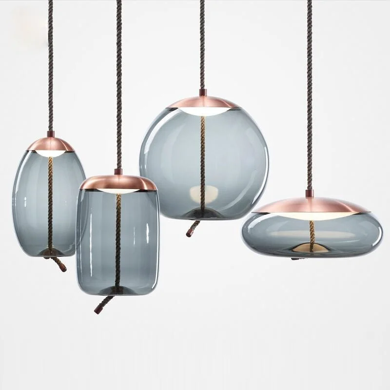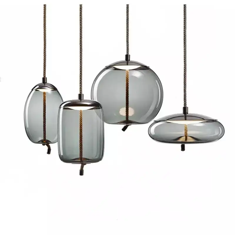Подвесные светильники в стиле пост-модерн из пеньковой веревки, подвесной светильник в виде узла брокиса, кухонная Стеклянная Подвесная лампа, подвесные светильники