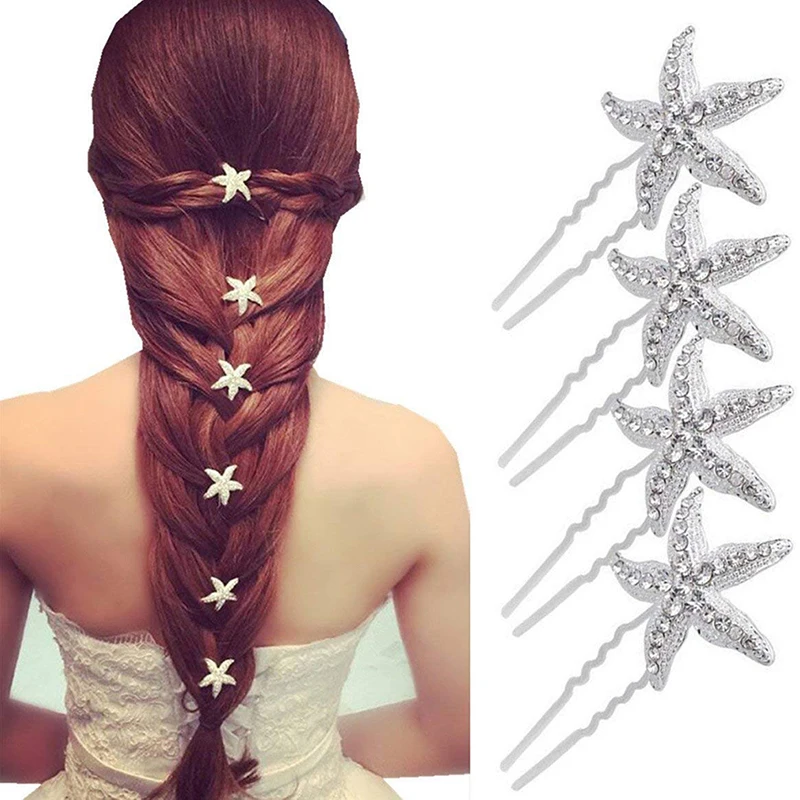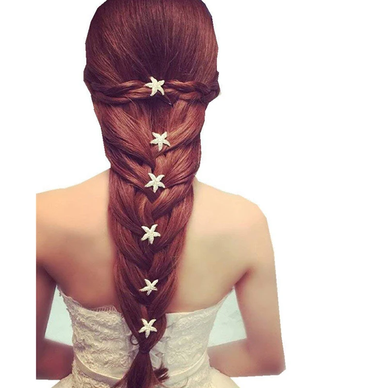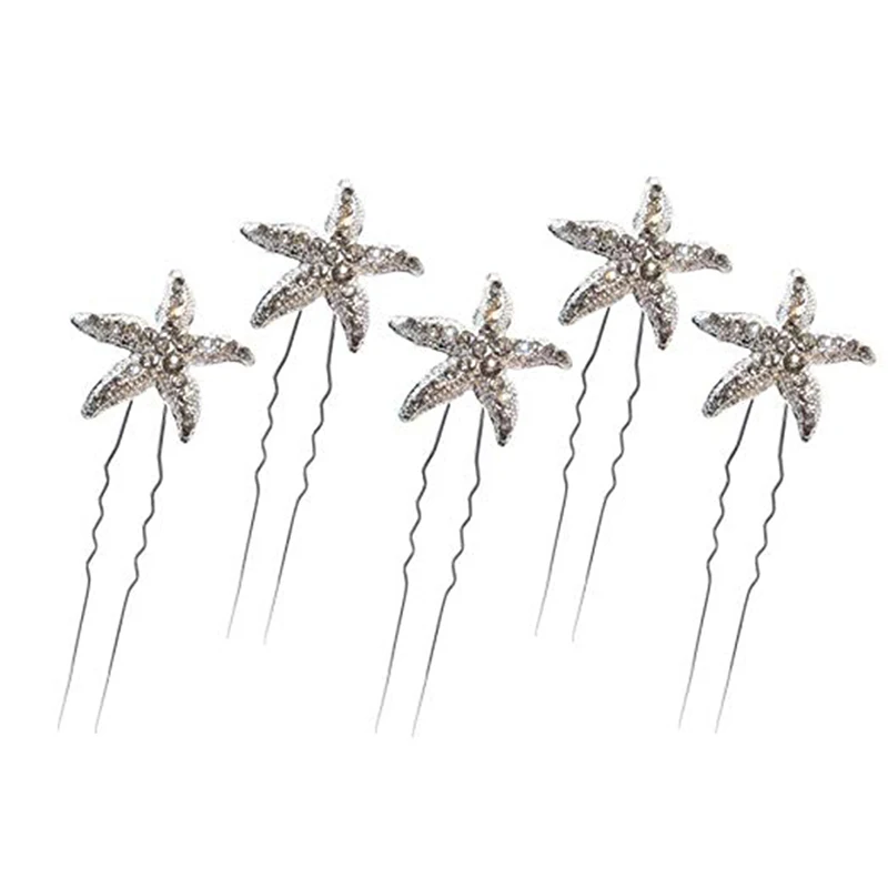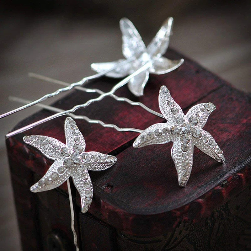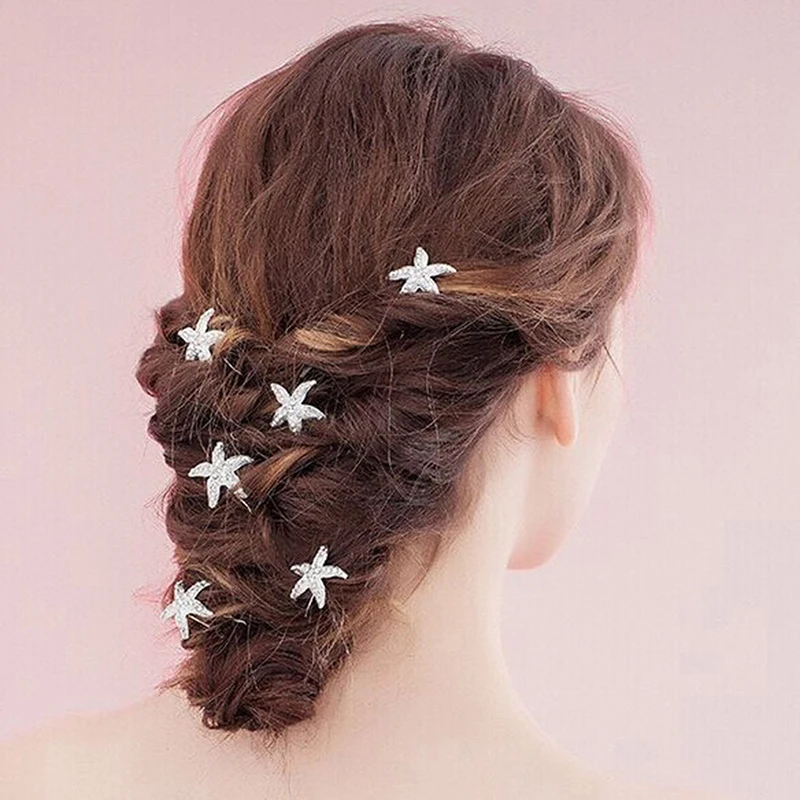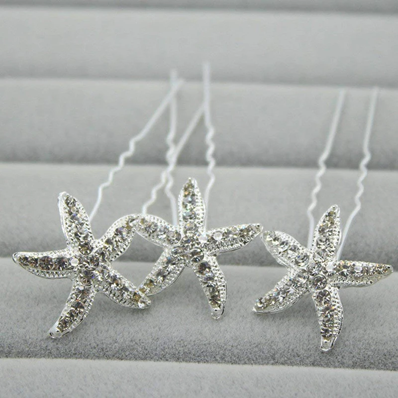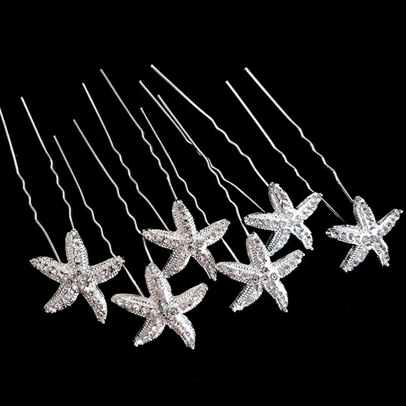 White 6 sets of hairpinsStarfish rhinestones