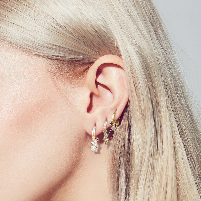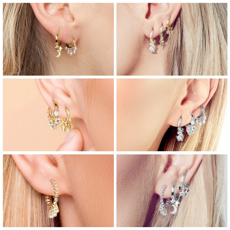 Серьги-кольца женские из серебра 925 пробы, с Луной и звездой