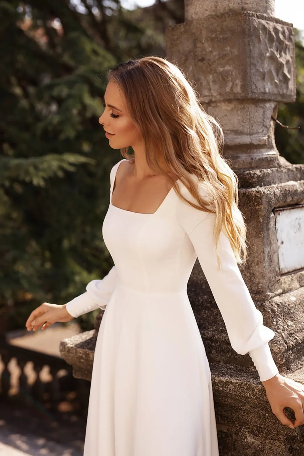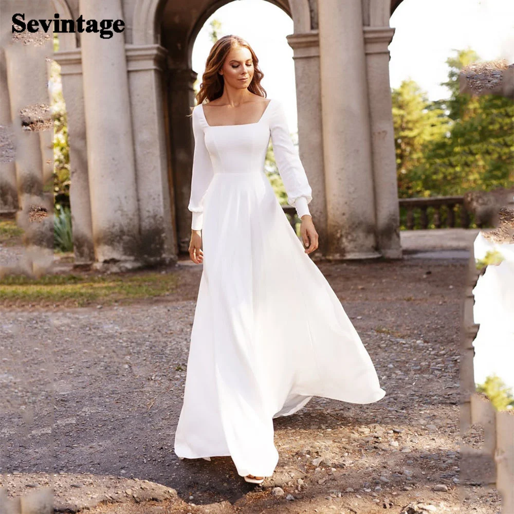 Винтажное свадебное платье в мусульманском стиле Se, атласные платья невесты трапециевидной формы с длинным рукавом, простые винтажные официальные свадебные платья, большие размеры, 2021
