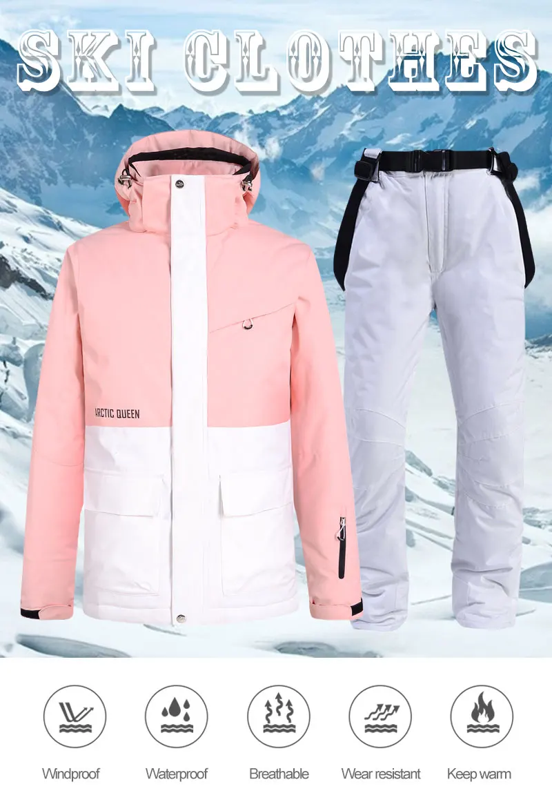 Лыжный костюм женский, зимняя водонепроницаемая куртка и штаны для ...