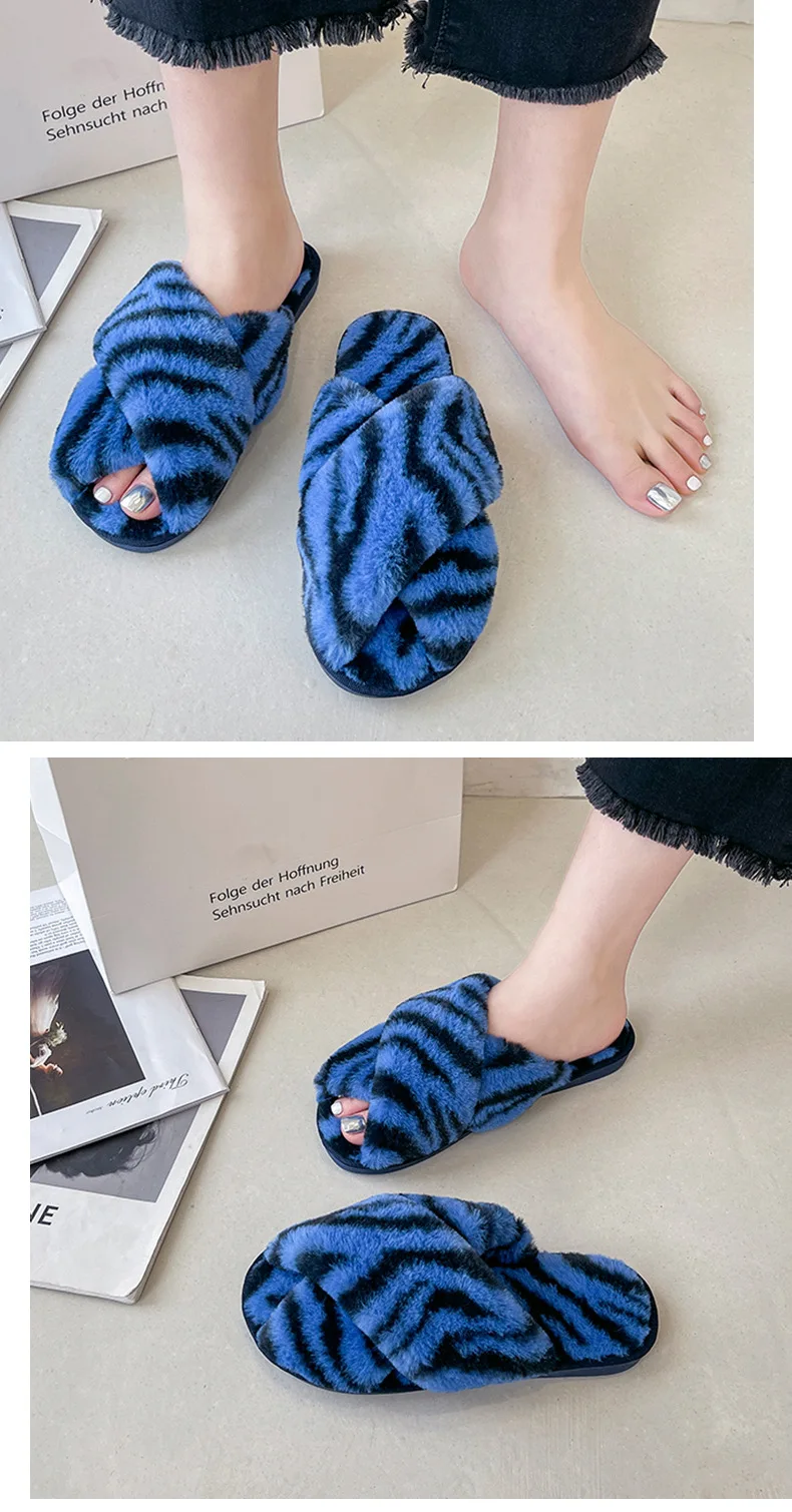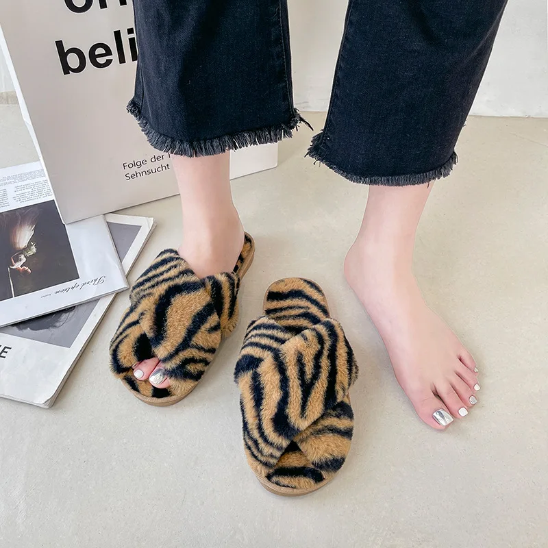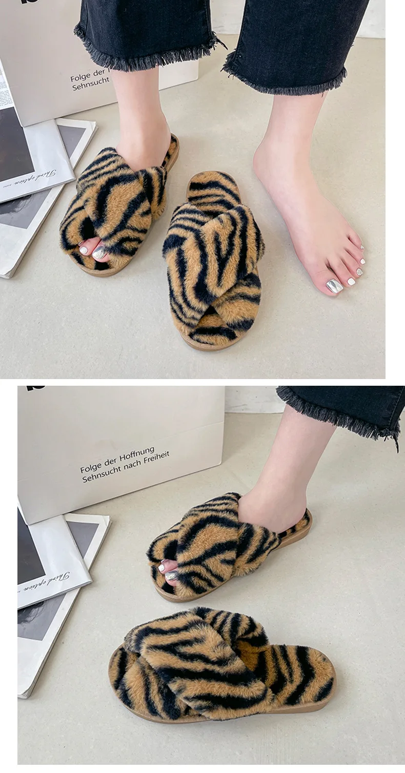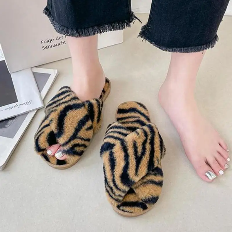 Тапочки женские меховые плюшевые, леопардовые, полосатые, 2021, зимние
