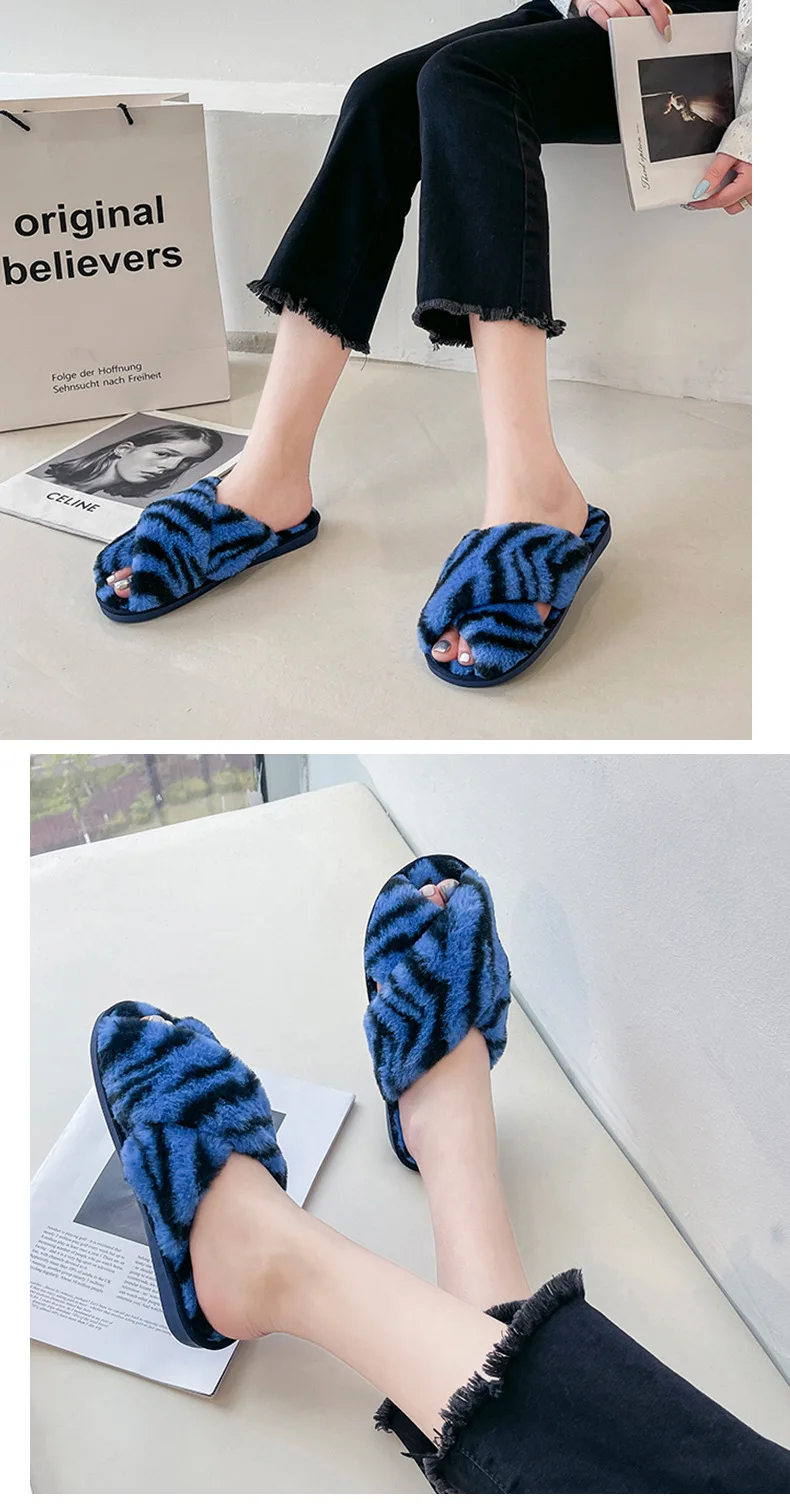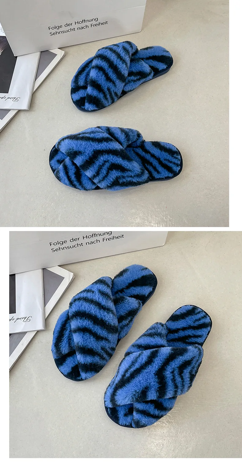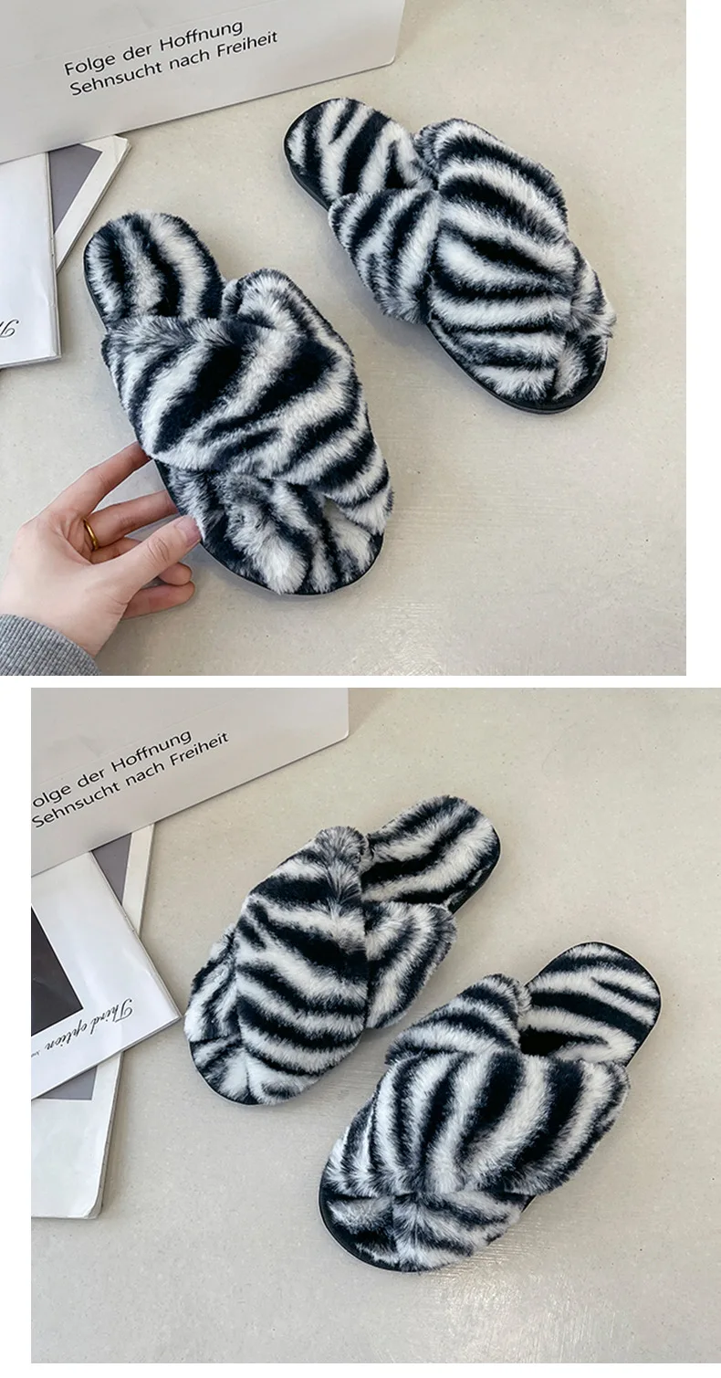 Тапочки женские меховые плюшевые, леопардовые, полосатые, 2021, зимние