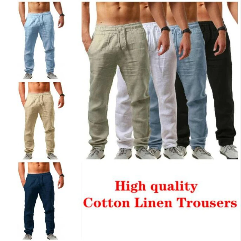 2022 Осенние новые мужские повседневные хлопковые льняные брюки, мужские летние спортивные штаны, однотонные льняные брюки, спортивные штаны для фитнеса, S-4XL
