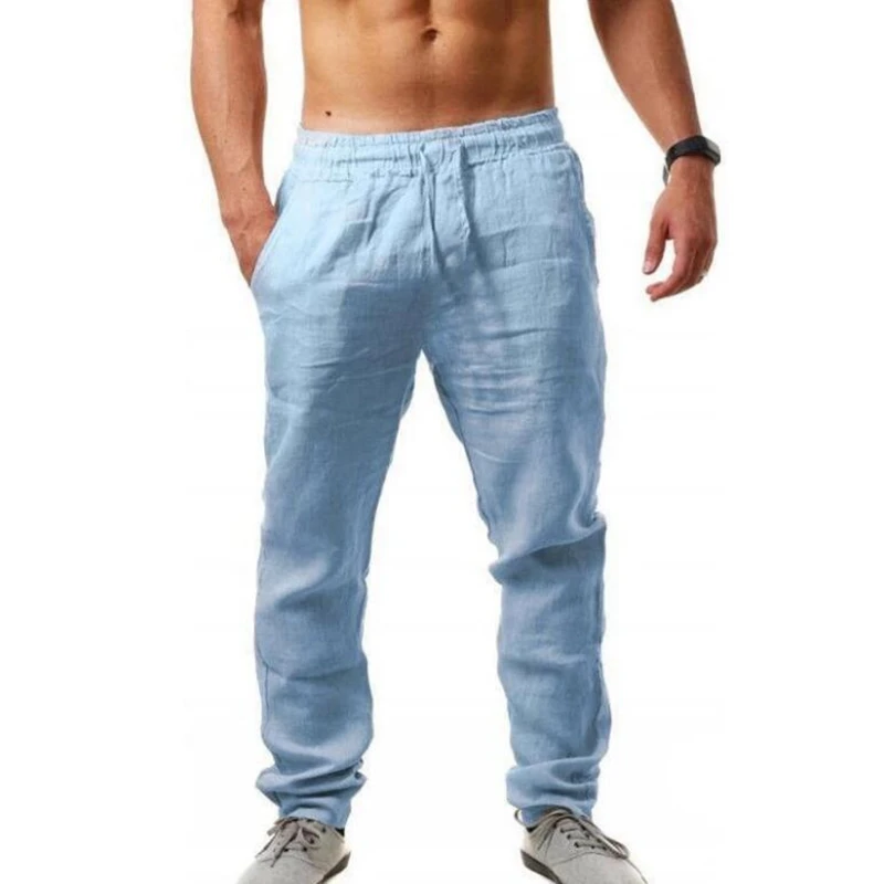 Новинка Осень 2022, мужские повседневные брюки из хлопка и льна, мужские летние спортивные брюки, однотонные льняные брюки, тренировочные брюки для фитнеса