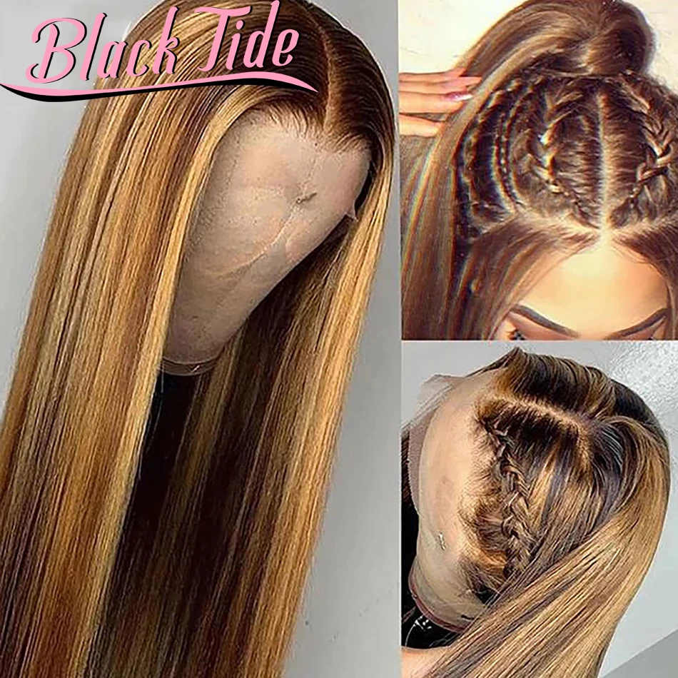 Прямой фронтальный парик 200% Реми P427 хайлайтер парик 13x4 прозра...