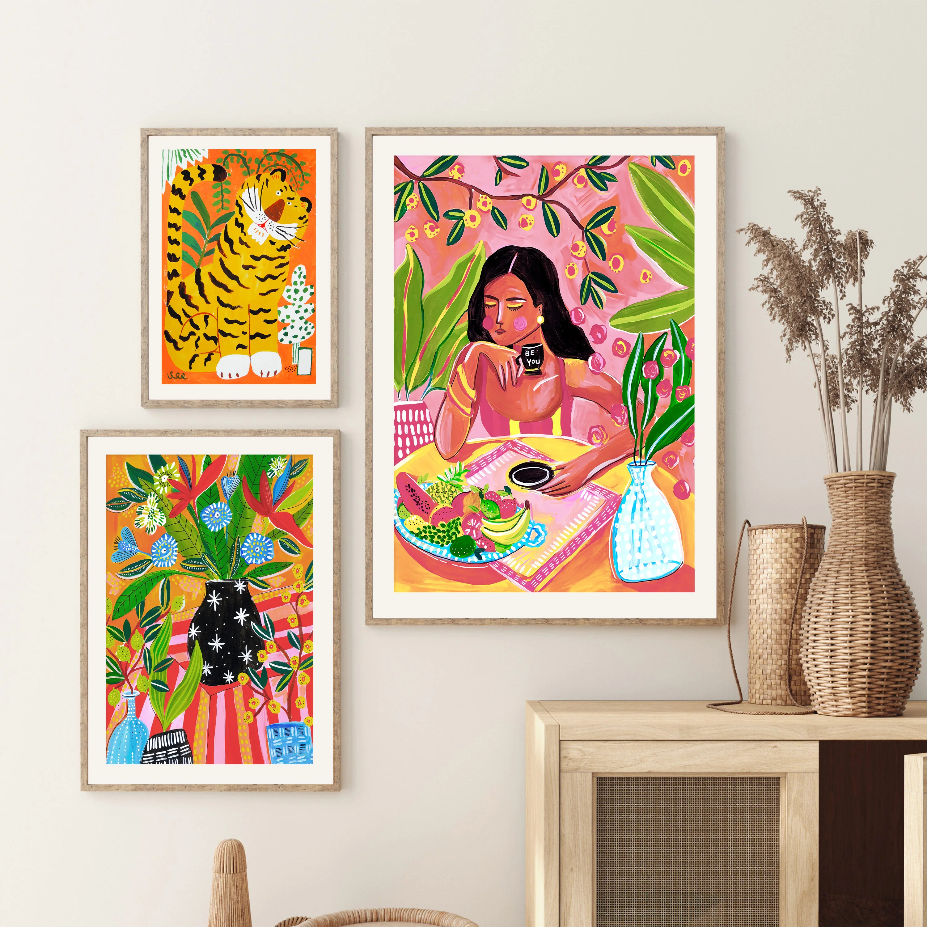 Тропический Бохо девушка автобус растение цветок абстрактная настен...