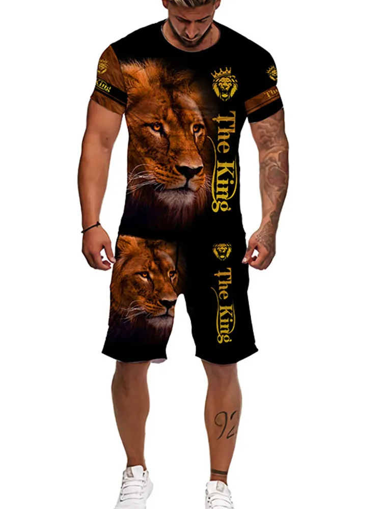 Мужская футболка с коротким рукавом, круглым вырезом и 3D-принтом льва