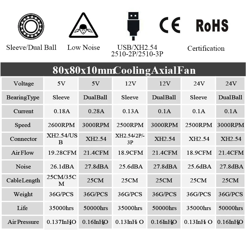 10 шт. Gdstime 80 мм чехол для компьютера осевой вентилятор 80 мм x 80 мм x 10 мм DC 5 в 12 В 24 в 8 см PC латоп Вентилятор охлаждения процессора двойной шар USB 2PIN 3PIN
