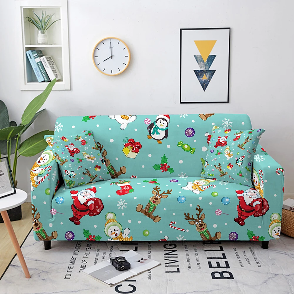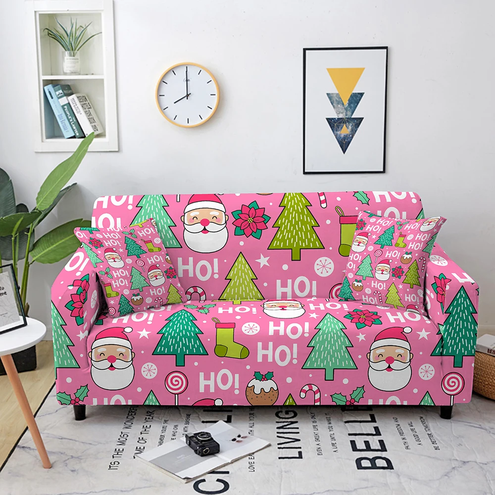 Рождественские Чехлы для дивана в гостиную, эластичный секционный чехол для углового дивана в виде Санта-Клауса, чехол для дивана, защитный чехол для дивана