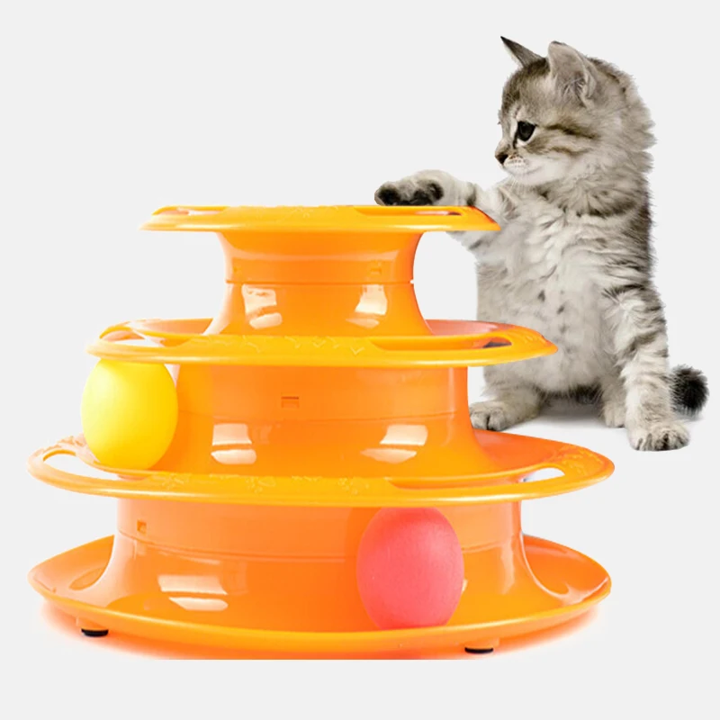 Трехуровневая игрушка для домашних животных, котят, башня, треки, диск для кошек, интеллектуальное развлечение, тройной диск для животных