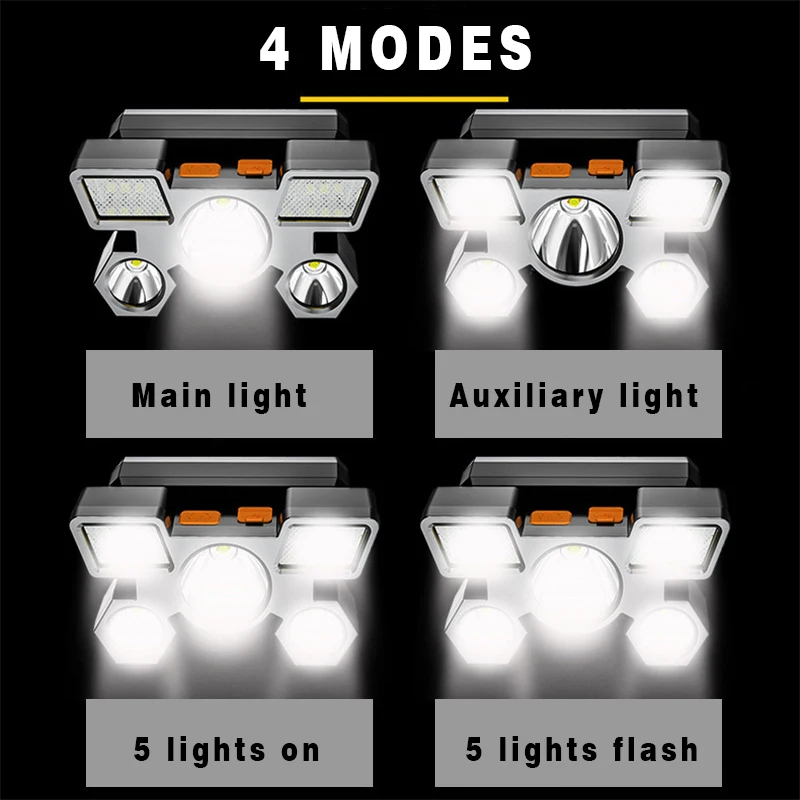 Легкий налобный фонарь из АБС-пластика, 5 светодиодов, со встроенным аккумулятором 18650, USB-зарядка, портативный фонарь, налобный фонарь, налобный фонарь для кемпинга на открытом воздухе