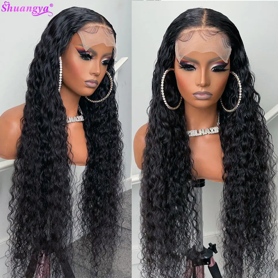 13х4 прозрачный парик фронта шнурка 30 дюймов перуанские человеческие волосы Remy парики шнурка 180 плотность волна воды HD 5X5 парик шнурка