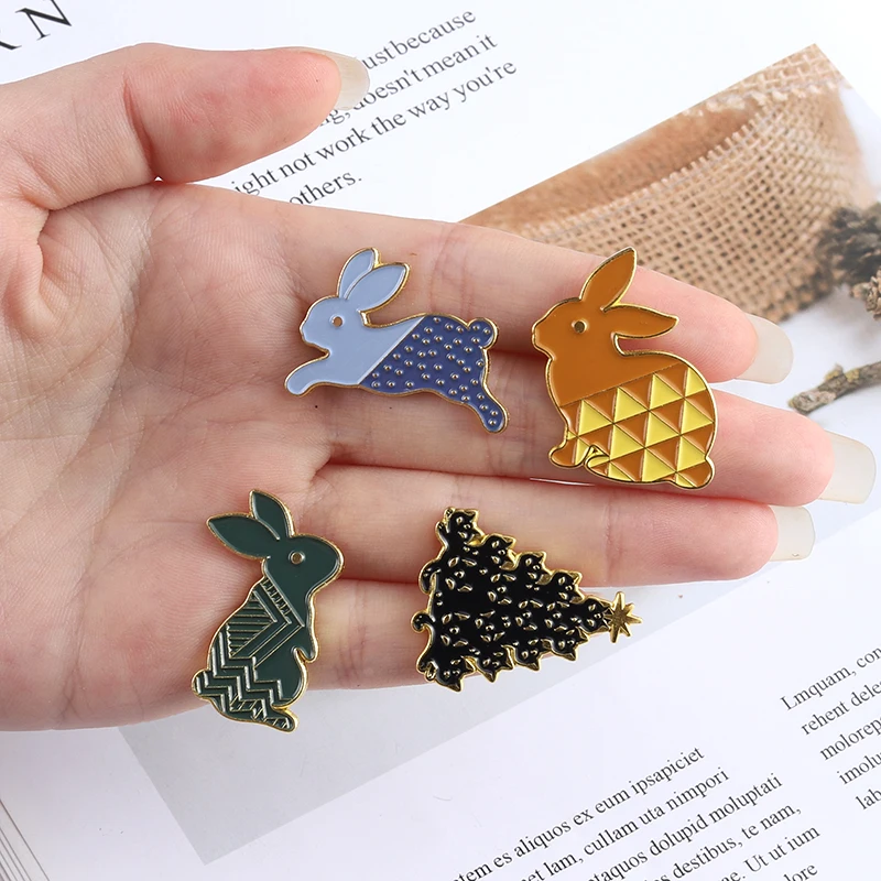 Эмалевые булавки с изображением кроликов, треугольные волнистые линии, броши с изображением деревьев, Значки для рюкзака, подарки для людей, любящих кроликов, ювелирные изделия, оптовая продажа