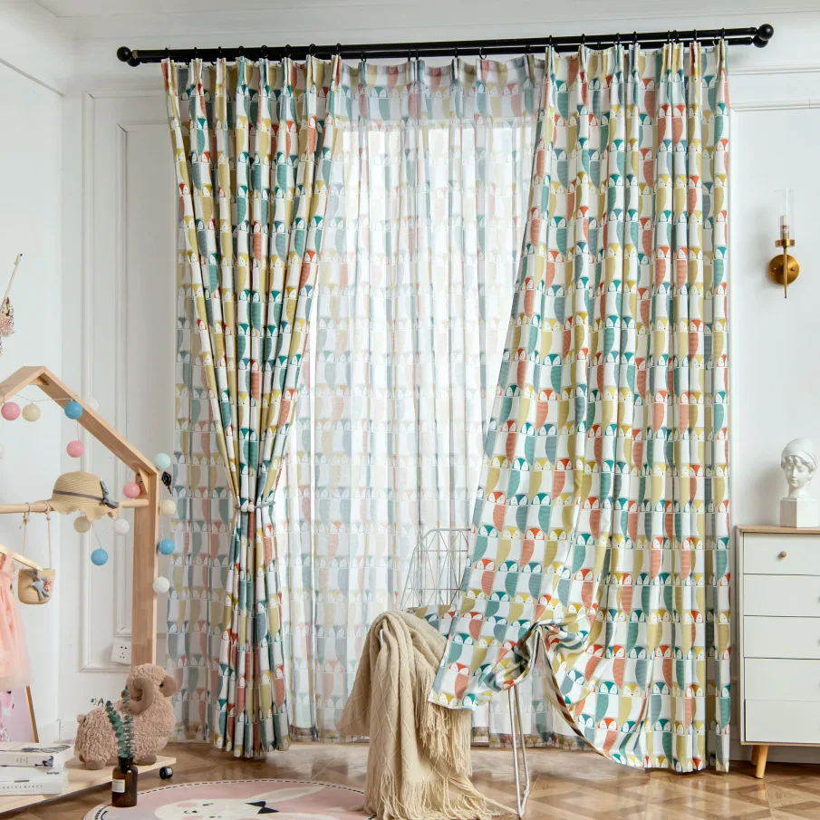 Занавески из хлопка и льна для детской спальни, занавески с принтом...
