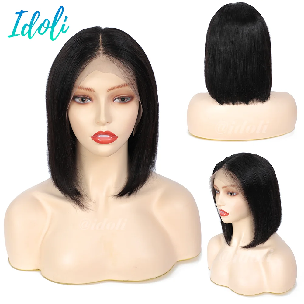 Парики Idoli с коротким Бобом, парики на сетке спереди, прямые бразильские парики без повреждений из человеческих волос для черных женщин, парики на сетке 13x 44x4