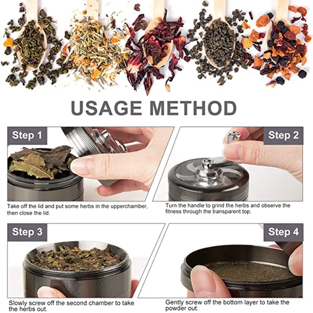 3. Прочный материал: благодаря сверхпрочному корпусу из цинкового сплава ручная мельница из цинкового сплава обладает максимальной прочностью и высокой устойчивостью к поломкам и царапинам.