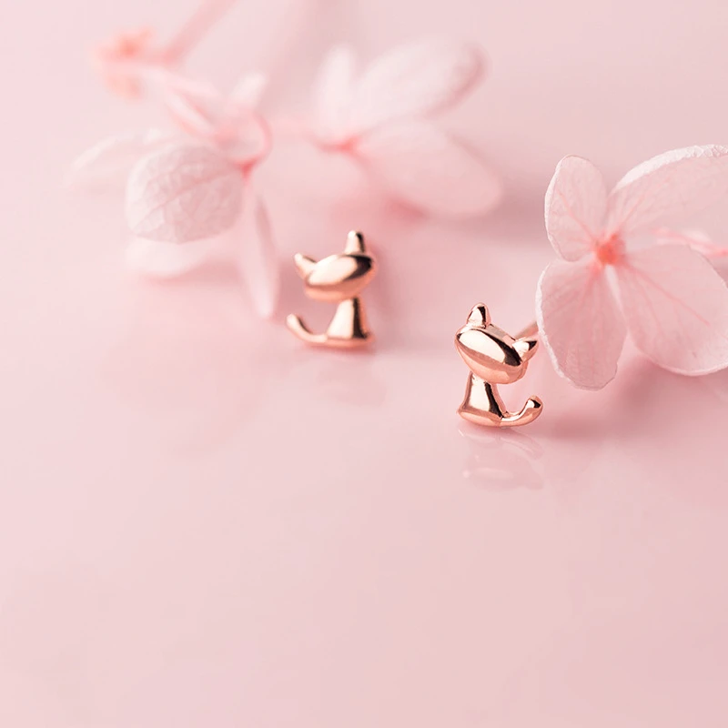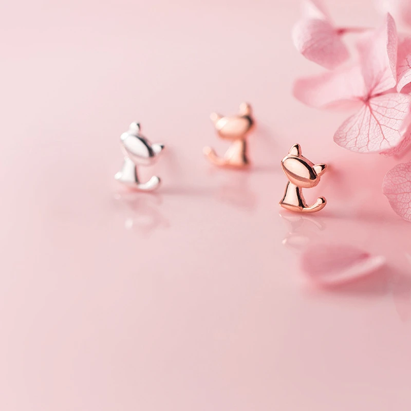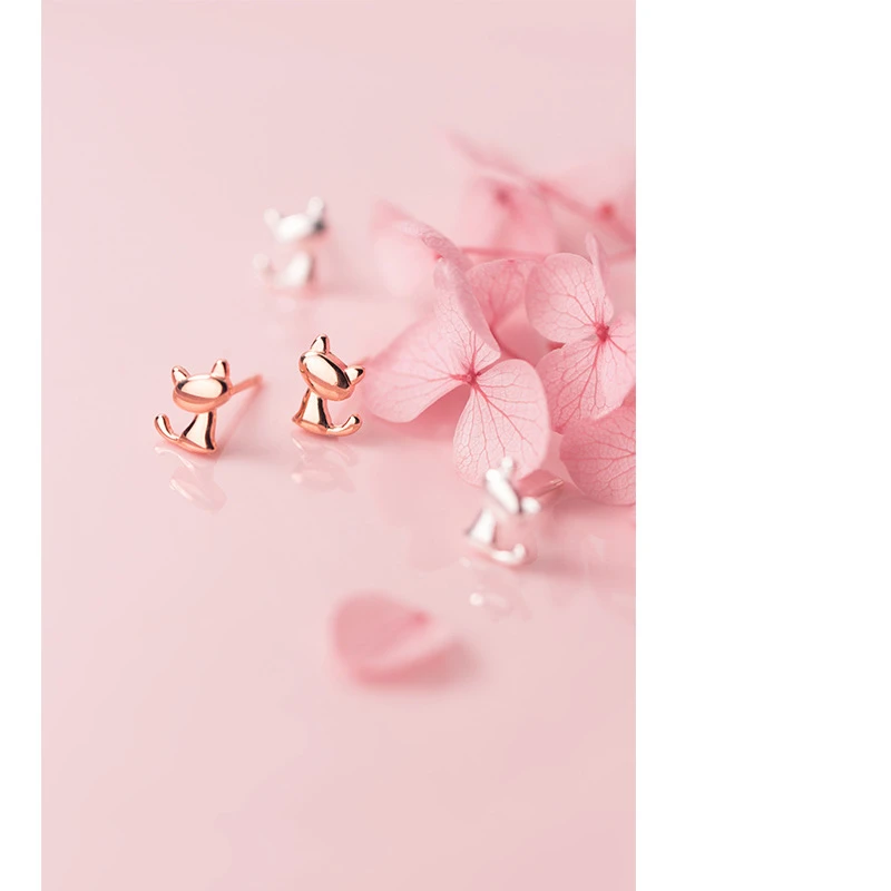 LKO настоящее серебро 925 пробы модные милые серьги-гвоздики с котом для женщин украшения для вечеринок милые серьги-гвоздики для девочек аксессуары