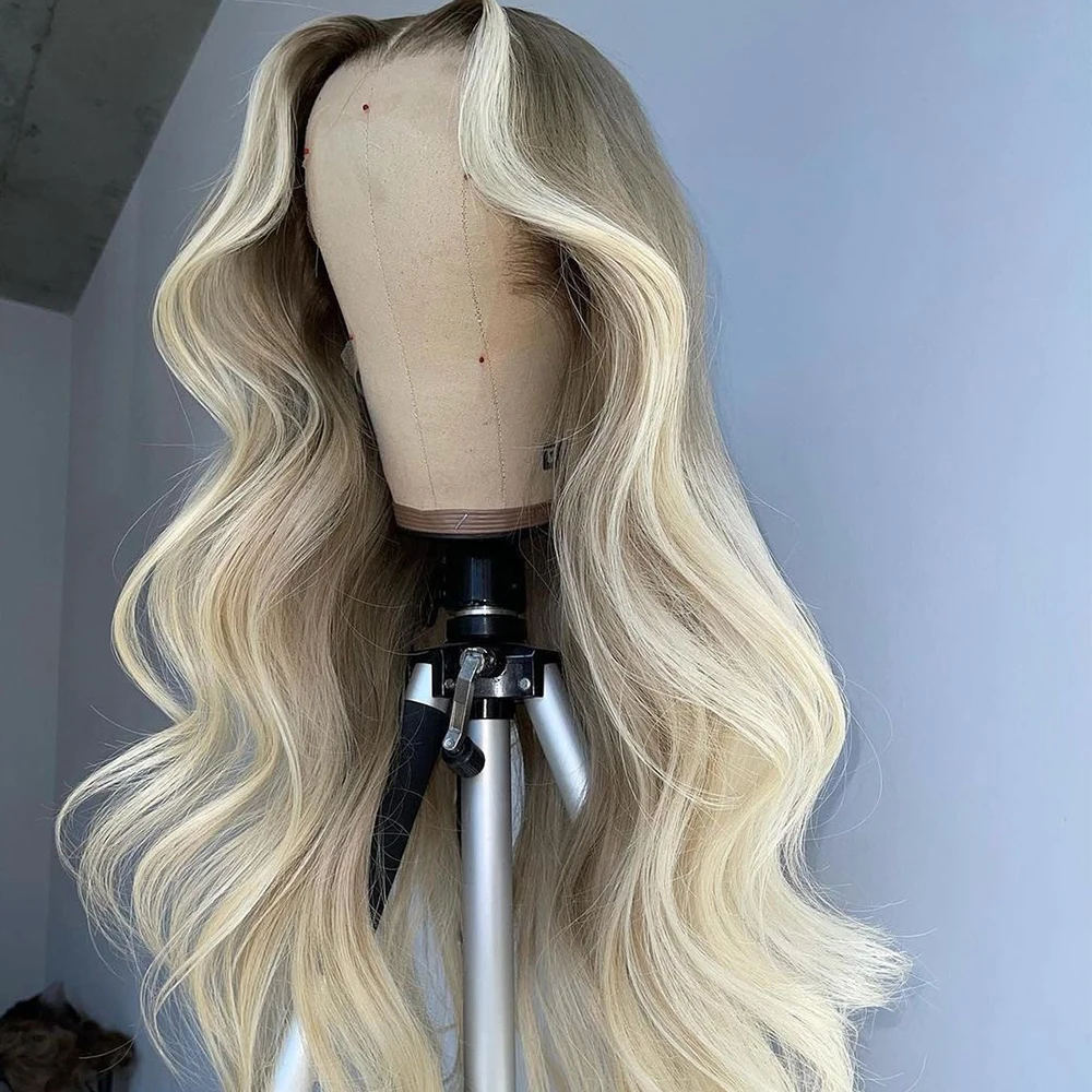 Парик блонд HD с прозрачной кружевной передней частью, волнистый женский парик из 613 цветных человеческих волос на сетке, парики без повреждений, предварительно выщипанный парик 150%