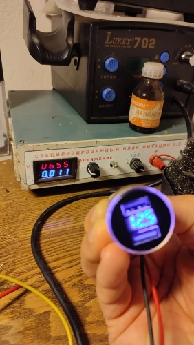 Автомобильное зарядное устройство с двумя USB-портами и вольтметром...