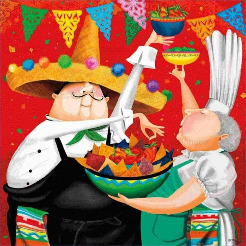 5D "сделай сам", полный штатив, мексиканский стиль, мультяшный персонаж шеф-повара, портрет, кухня, столовая, ресторан, декоративная роспись