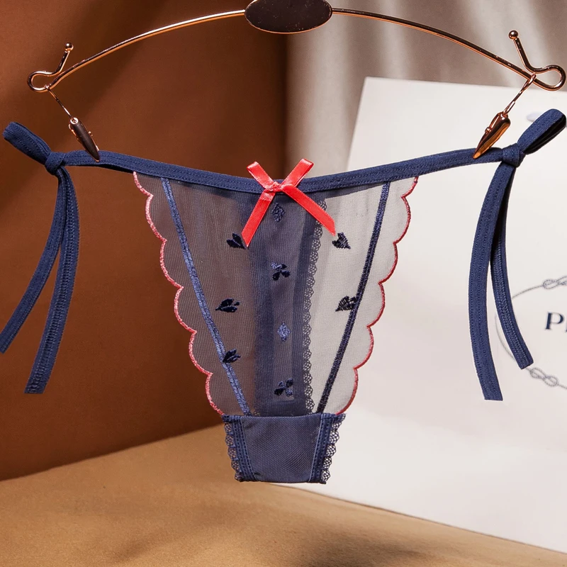 Стринги с вышивкой для девушек, женские трусики, сексуальные сетчат...