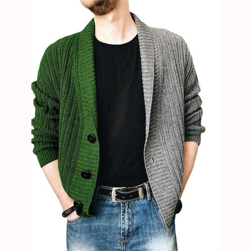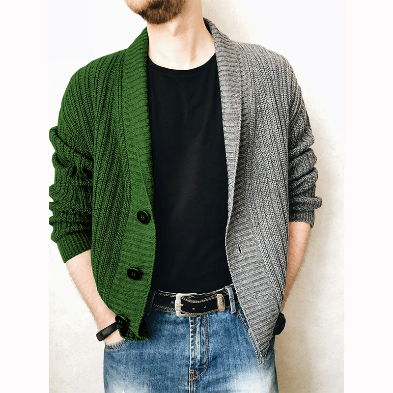 Осенне-зимний Новый двухцветный повседневный мужской свитер с длинн...