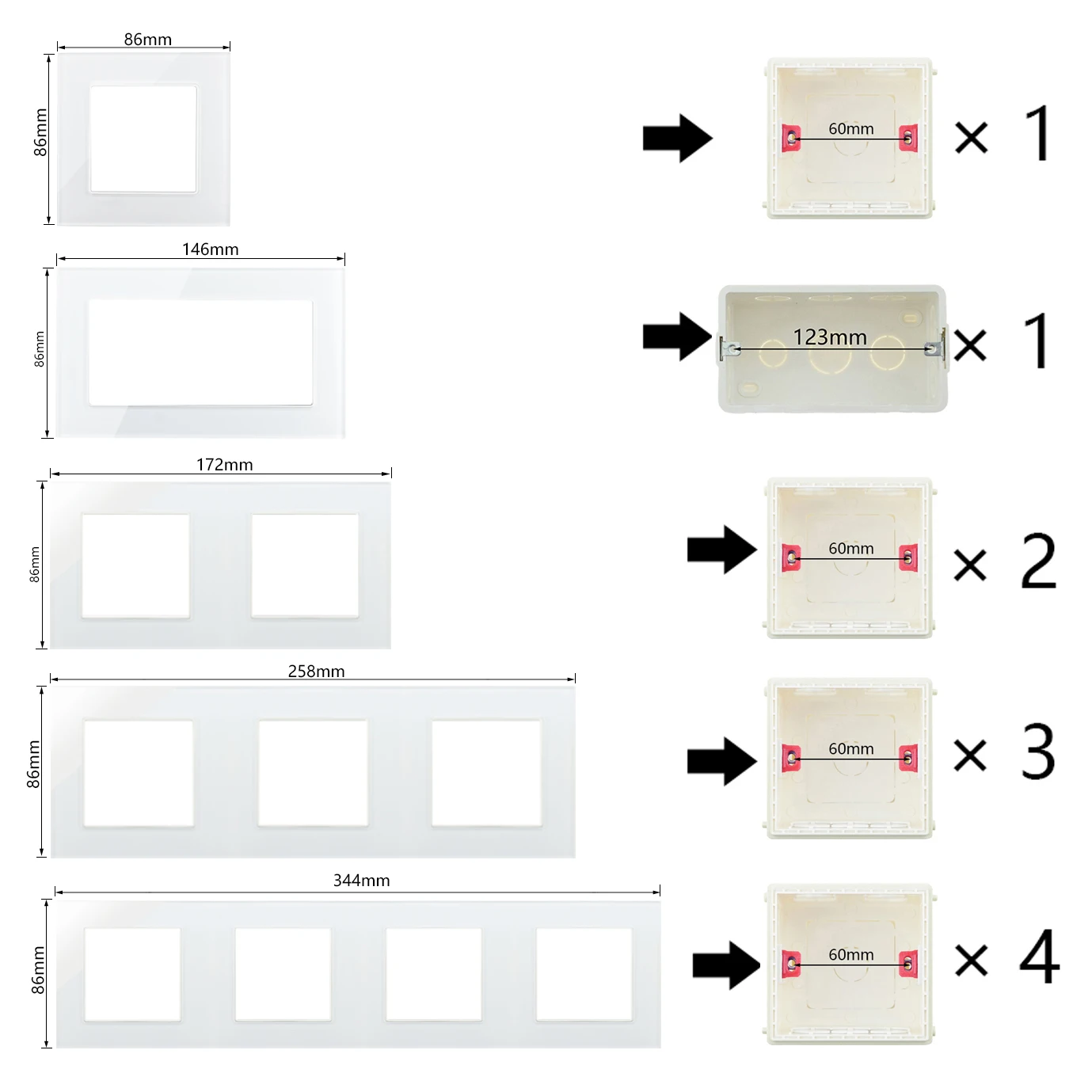 Материал панели: стеклоНоминальное напряжение: 110-250 ВDE/Французский модуль Номинальный ток: 16AУниверсальный модуль номинального тока: 13AНоминальный ток usb-модуля: около 2,1 А (медленная зарядка)RJ45 / Network / HDMI-совместимый и т. Д. Номинальный ток: слабый ток