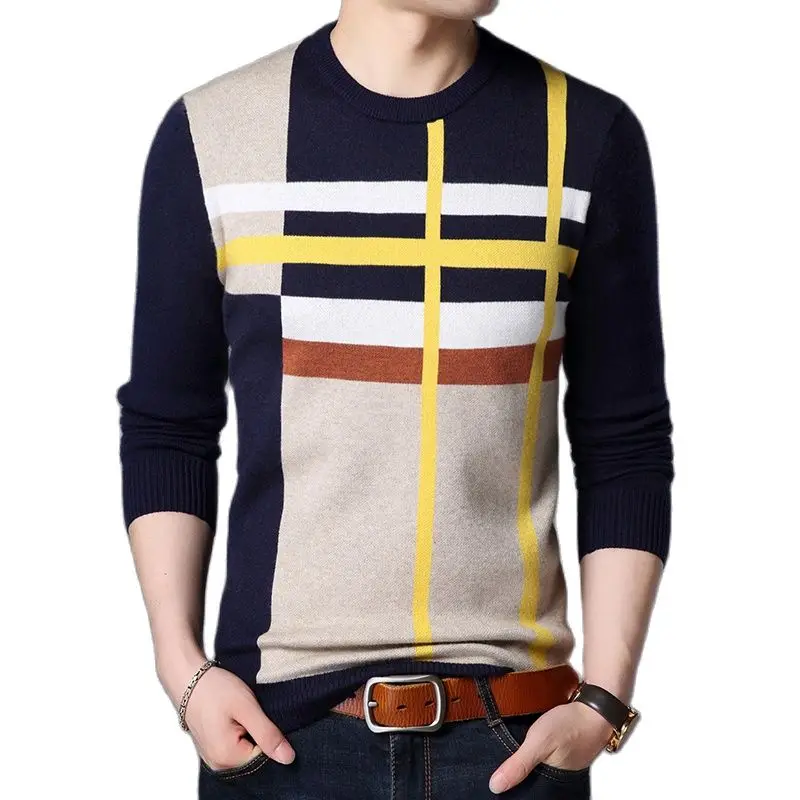 Новинка 2021, модный брендовый свитер для мужчин, пуловер с круглым вырезом, Облегающие джемперы, вязаные шерстяные Джемперы, зимняя повседневная мужская одежда в Корейском стиле