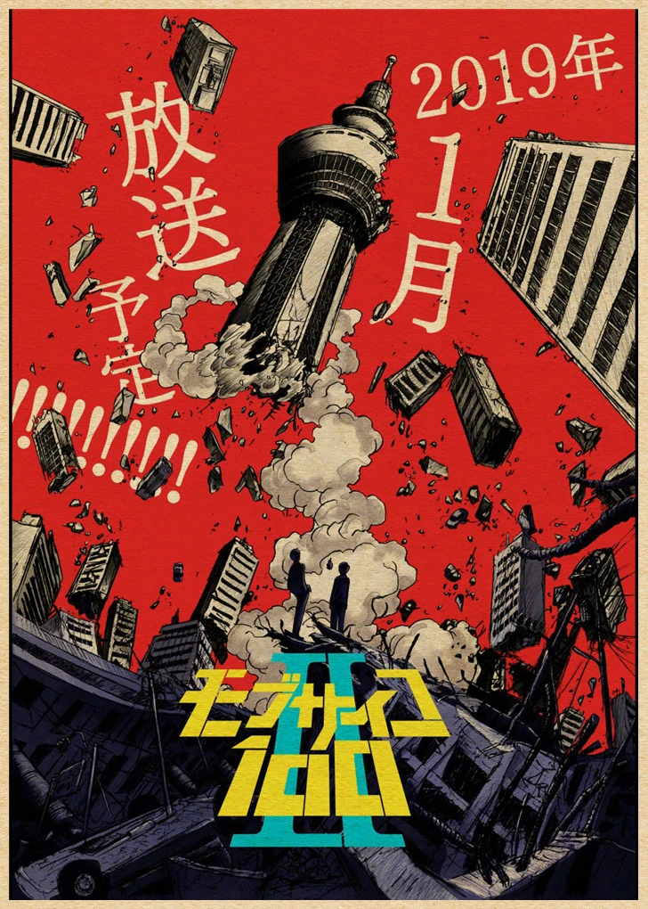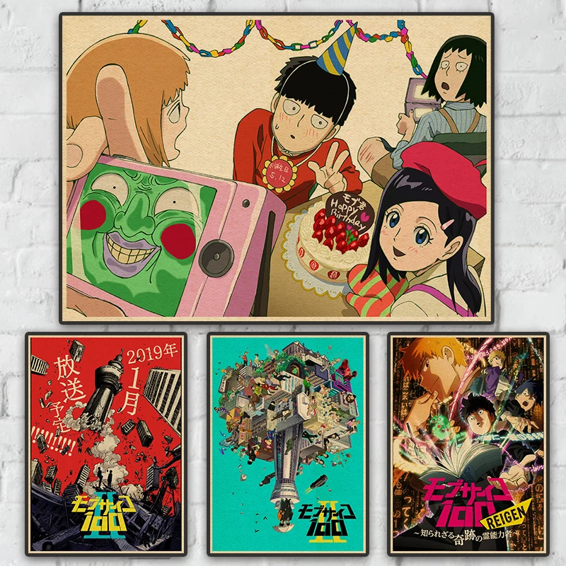 Ретро-плакат с изображением японской анимационной мабии "Психо" 100 II, крафт-бумага, художественные принты и плакаты, Декор для дома, наклейки на стену, купите 3, получите 4