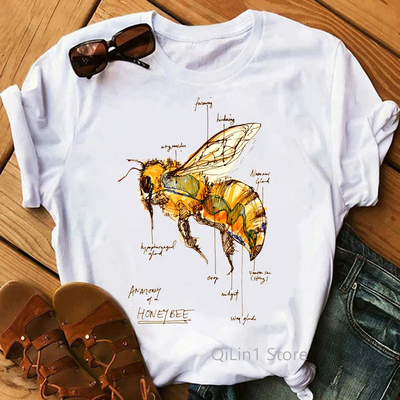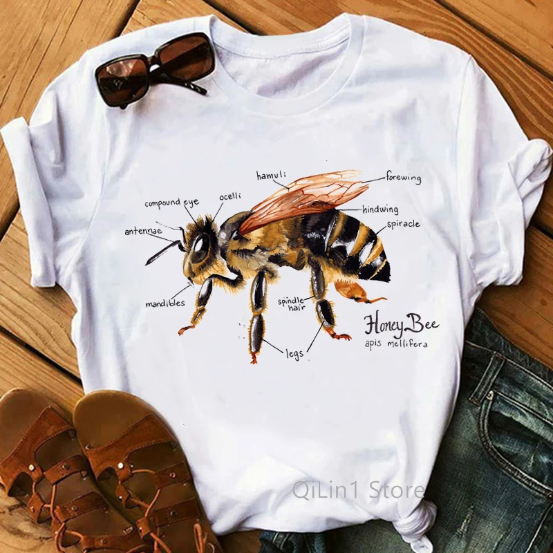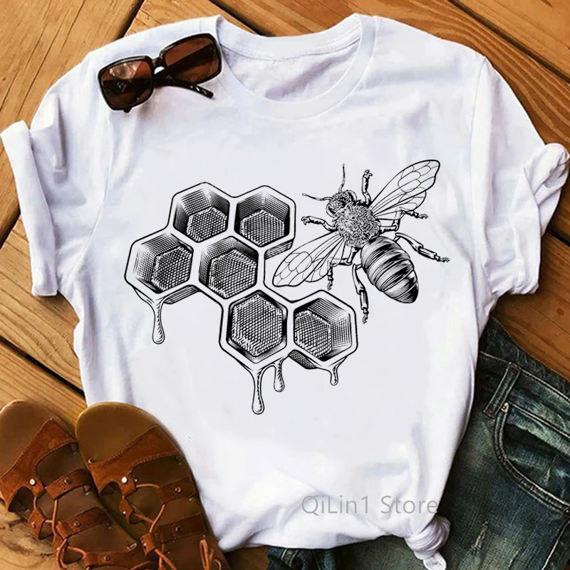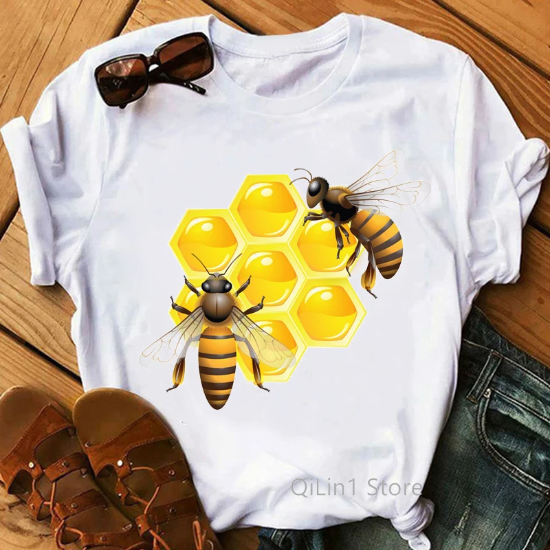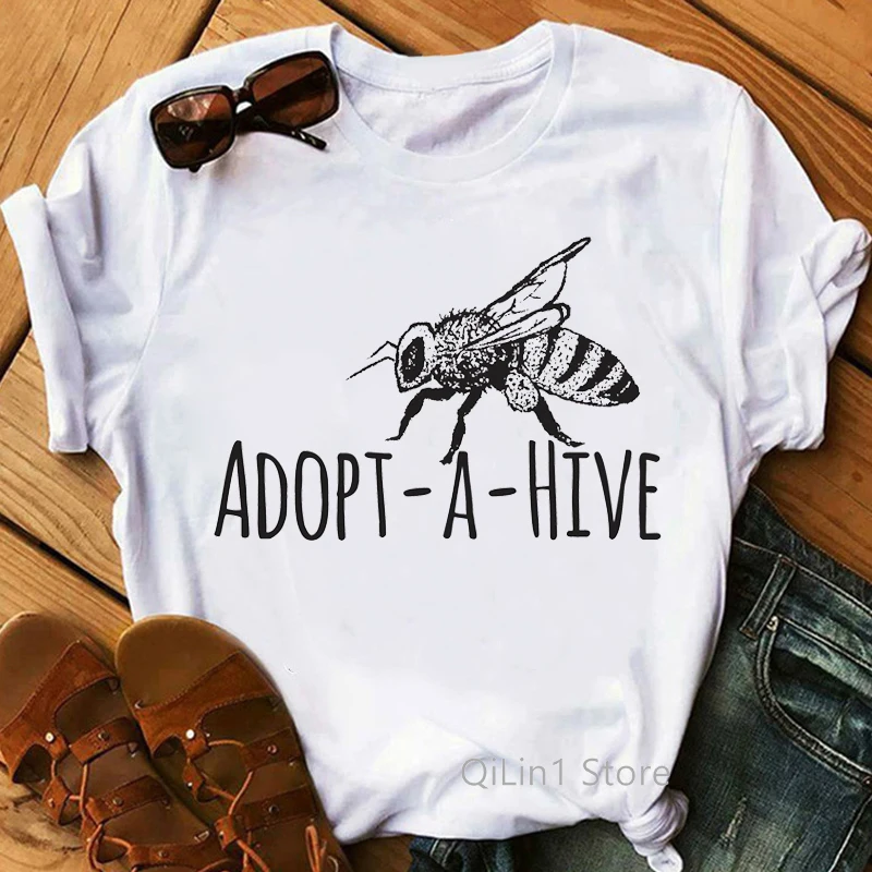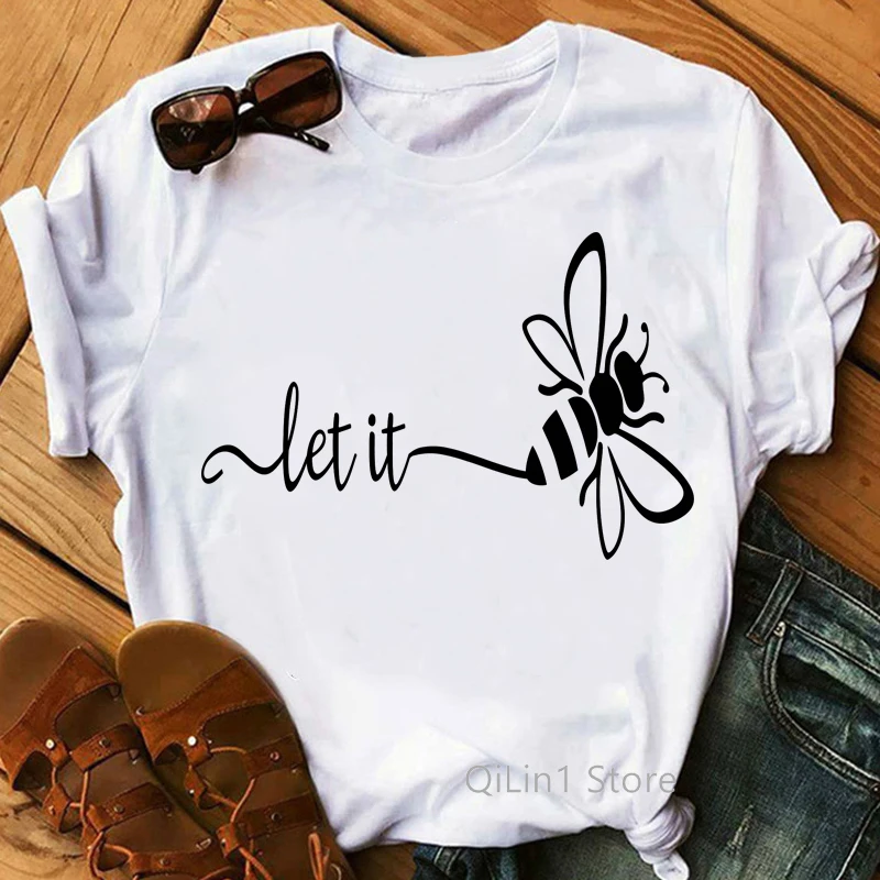 Футболка женская с забавным принтом Let It Bee, крутая футболка с графическим принтом, кавайная летняя одежда в стиле Харадзюку, 2021