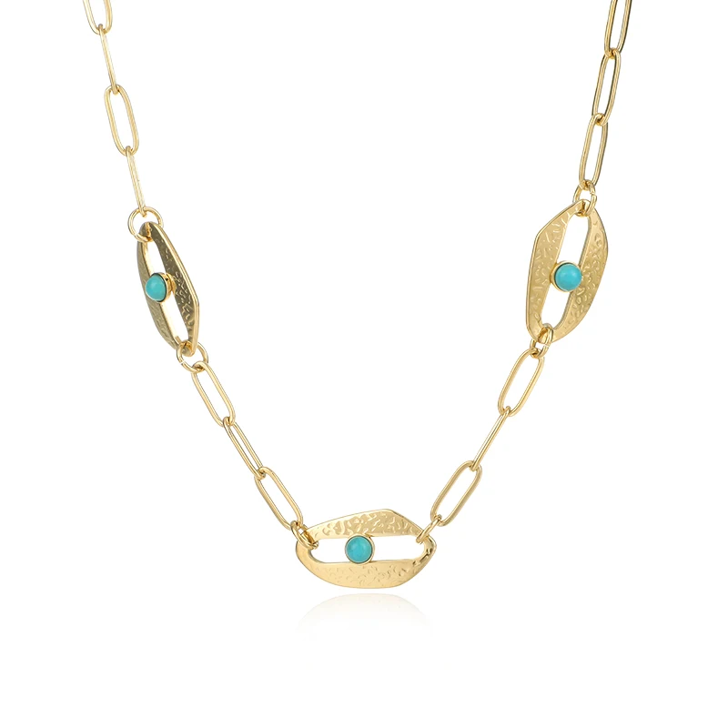 Элегантное женское ожерелье с кулоном, высококачественное колье-чокер из нержавеющей стали с бирюзой, металлическое колье 14K, женское колье