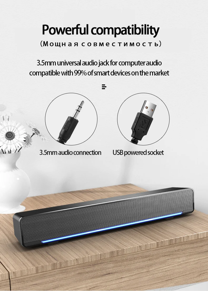 Обзор:Это тонкий динамик с питанием от USB; Стабильный и без потерь басовый звуковой эффект и окружающие стереозвуки приносят вам прекрасную музыку. С 3,5 мм аудио разъем, он идеально подходит для настольных ПК, ноутбуков, ТВ, смартфонов, планшетных ПК, PC, MP3, MP4 и многое другое. Этот динамик с питанием от USB является энергосберегающим и экологически чистым, безопасным и надежным. Высококачественный пластиковый материал, легкий и портативный, удобно брать. Классический черный внешний вид делает его красивым и сочетающимся с стилем украшения вашей комнаты. Регулятор громкости с синим светодиодный светильник облегчает работу и делает динамик более изысканным.Особенности:Стабильный и без потерь басовый звуковой эффект и стерео окружающие звуковые колонки приносят вам прекрасную музыку.С 3,5 мм аудио разъем, он идеально подходит для настольных ПК, ноутбуков, ТВ, смартфонов, планшетных ПК, PC, MP3, MP4 и многое другое.Этот динамик с питанием от USB является энергосберегающим и экологически чистым, безопасным и надежным.Высококачественный пластиковый материал, легкий и портативный, удобно брать.Классический черный внешний вид делает его красивым и сочетающимся с стилем украшения вашей комнаты.Спецификация:Модель: V-196Материал: пластикВыходная мощность: 3 ВтИсточник питания: 5 В постоянного тока и 5 В USBВход Интерфейс: USB Plug & 3,5 мм аудио разъемКанал: 2,0Разделение: GE40 дБSNR: ge80 дБЧастотный диапазон отклика: 25 Гц-20 кГцВход питания: USB/DC 5V-600mAЦвет: черный, белый (по желанию)USB кабель: прибл. 1 мАудиокабель: прибл. 1 мОсновной размер изделия: прибл. 32*6,8*6,4 см/12,59*2,67 * 2.51inОсновной вес изделия: прибл. 466 г/16,43 унцийРазмер посылка: прибл. 32,7*9*7,5 см/12,87*3,54 * 2.95inВес посылка: прибл. 545 г/19,22 унций