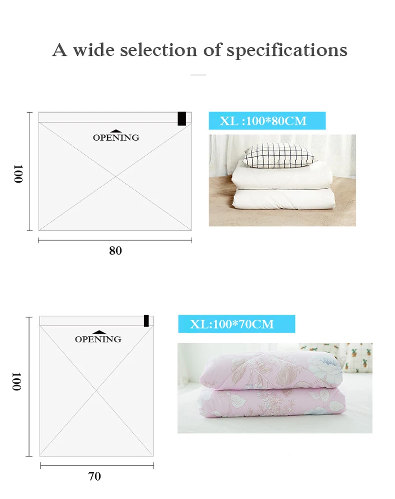 Размер XS 35x50 см: подходит для хранения тонкого одеяла, 2-3 свитера, подушки, зимнее пальто, одежда с хлопковой подкладкой и т. д.