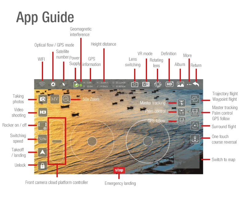 2. Управление одним нажатием кнопки: вы можете управлять самолетом, чтобы взлететь, приземлиться и даже вернуться с расстояния одним щелчком. Когда Дрон вернется, он прибудет в исходное место, откуда он взлетел.